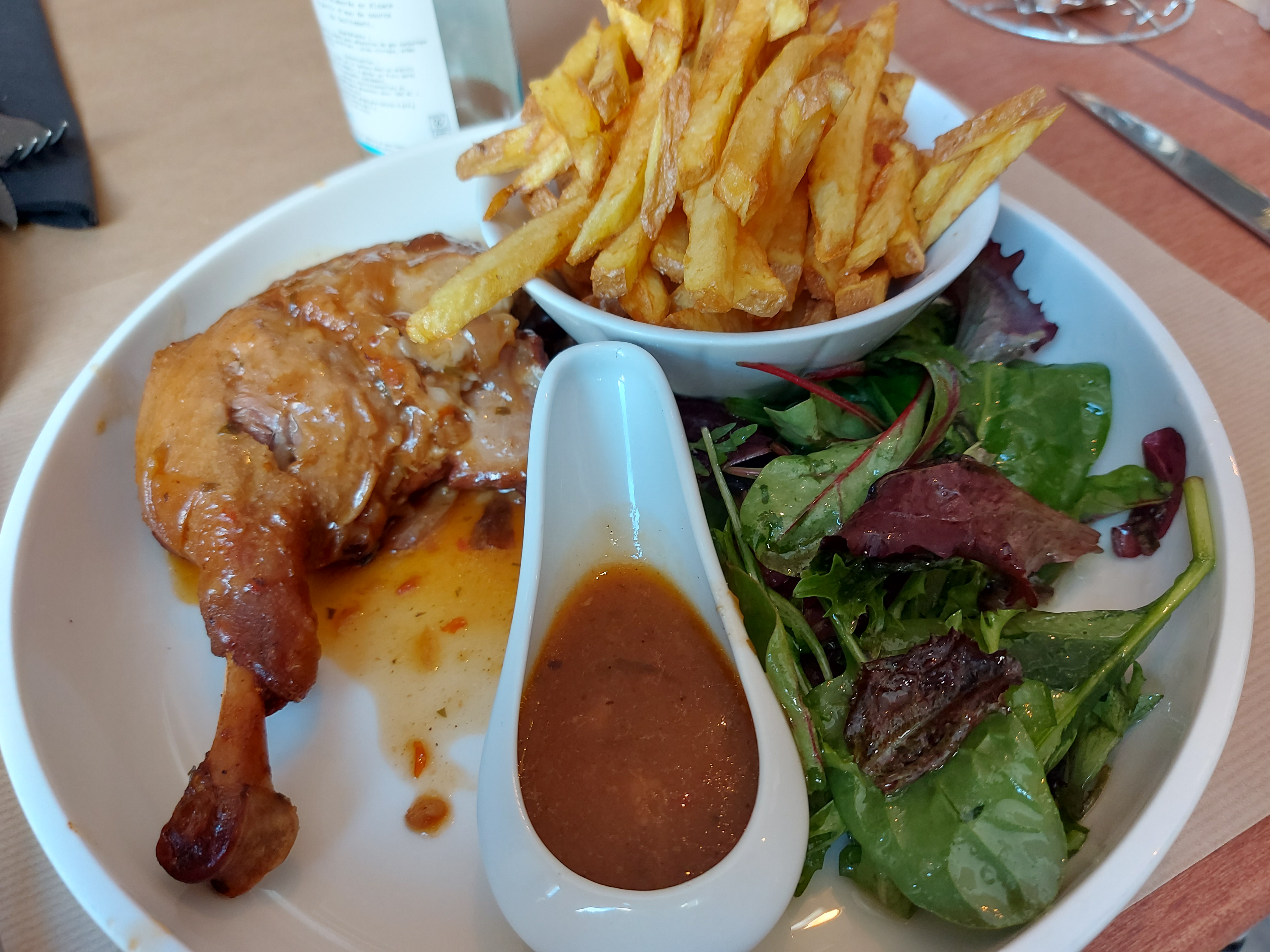 Ambiance chaleureuse, personnel agréable, j'ai pris le magret de canard avec ses frites : cuisson niquel, et frites maison TRÈS bonnes. Je recommande !