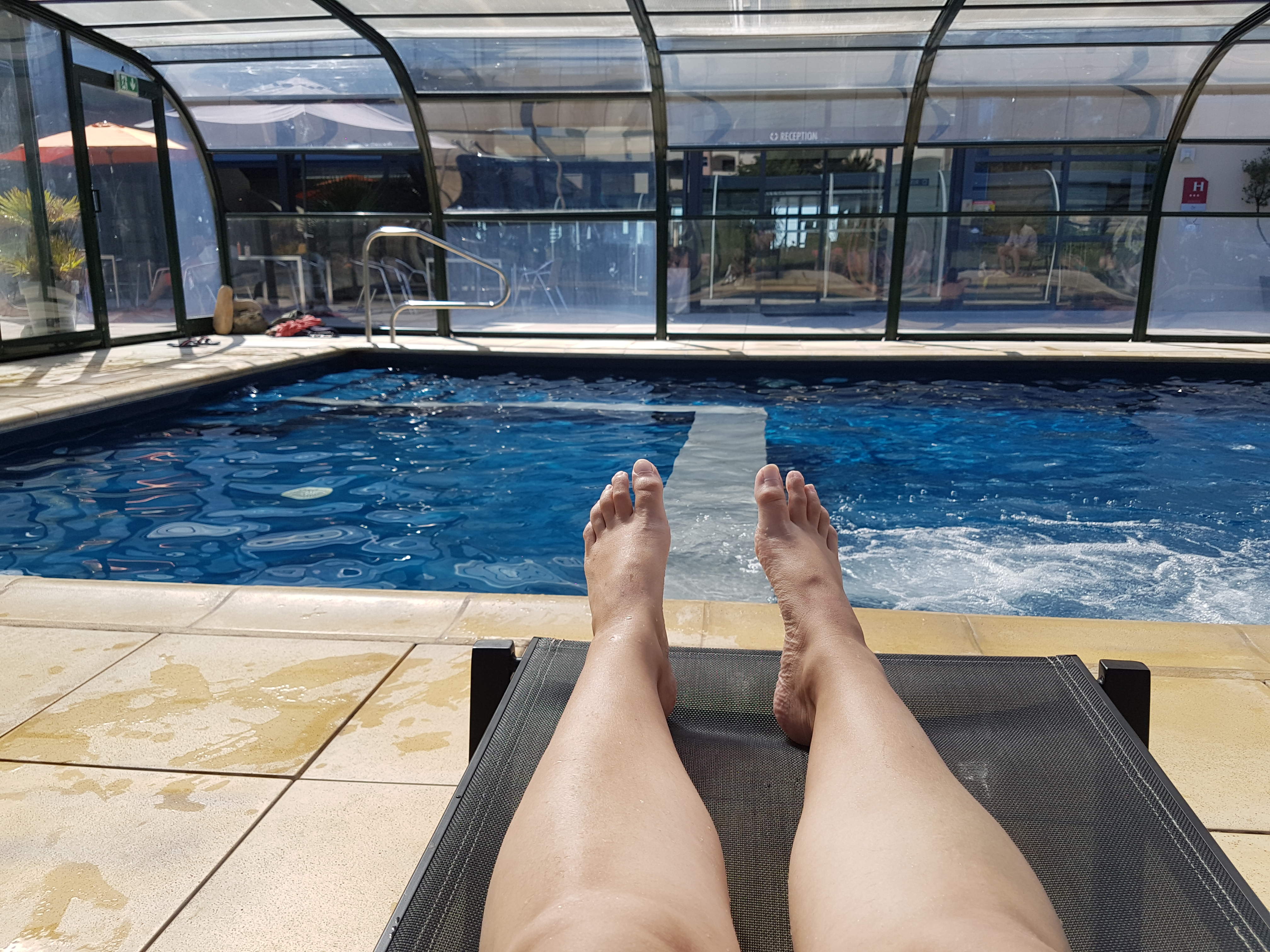 Établissement sympa avec piscine couverte et la plage juste en face..