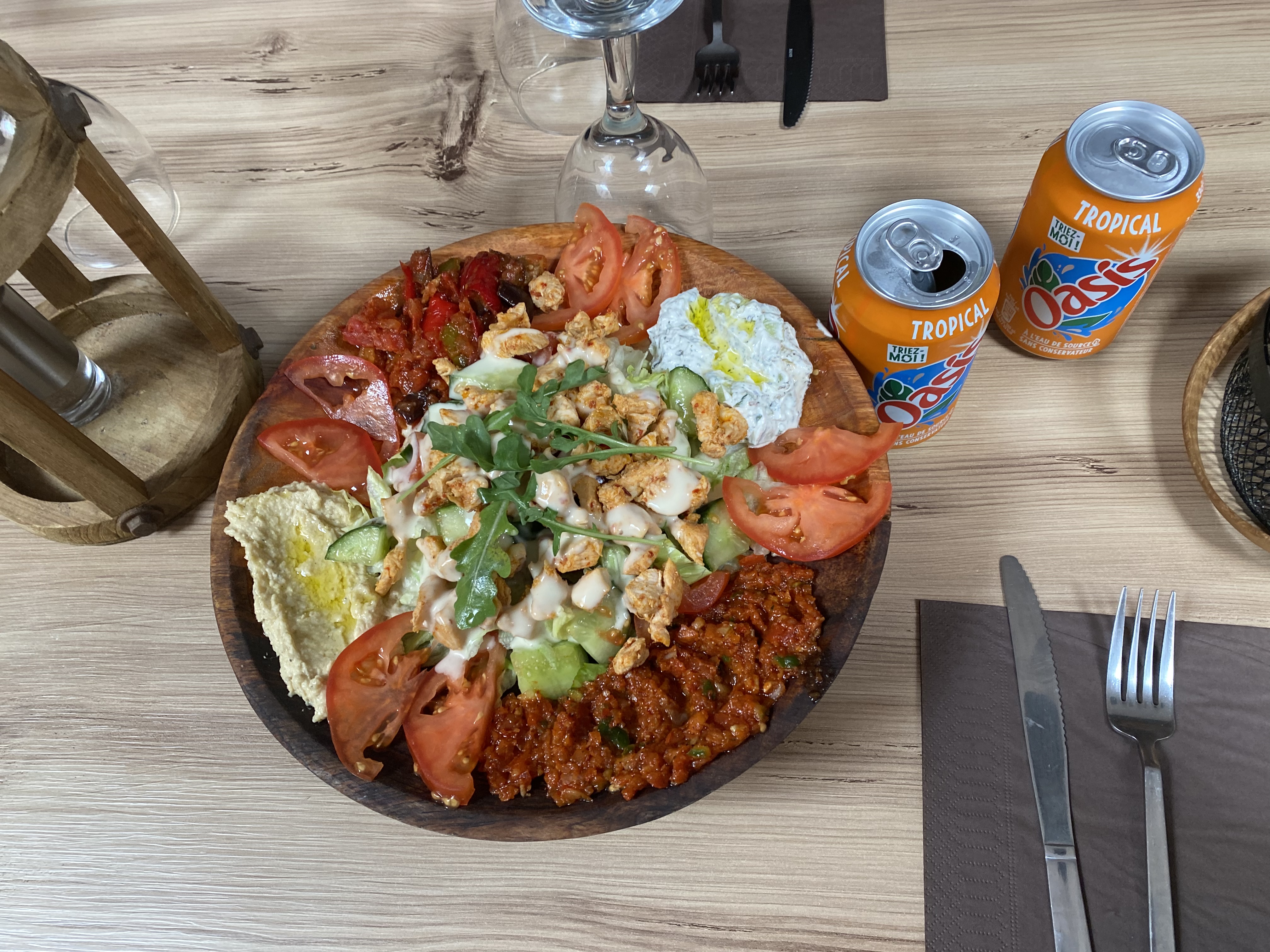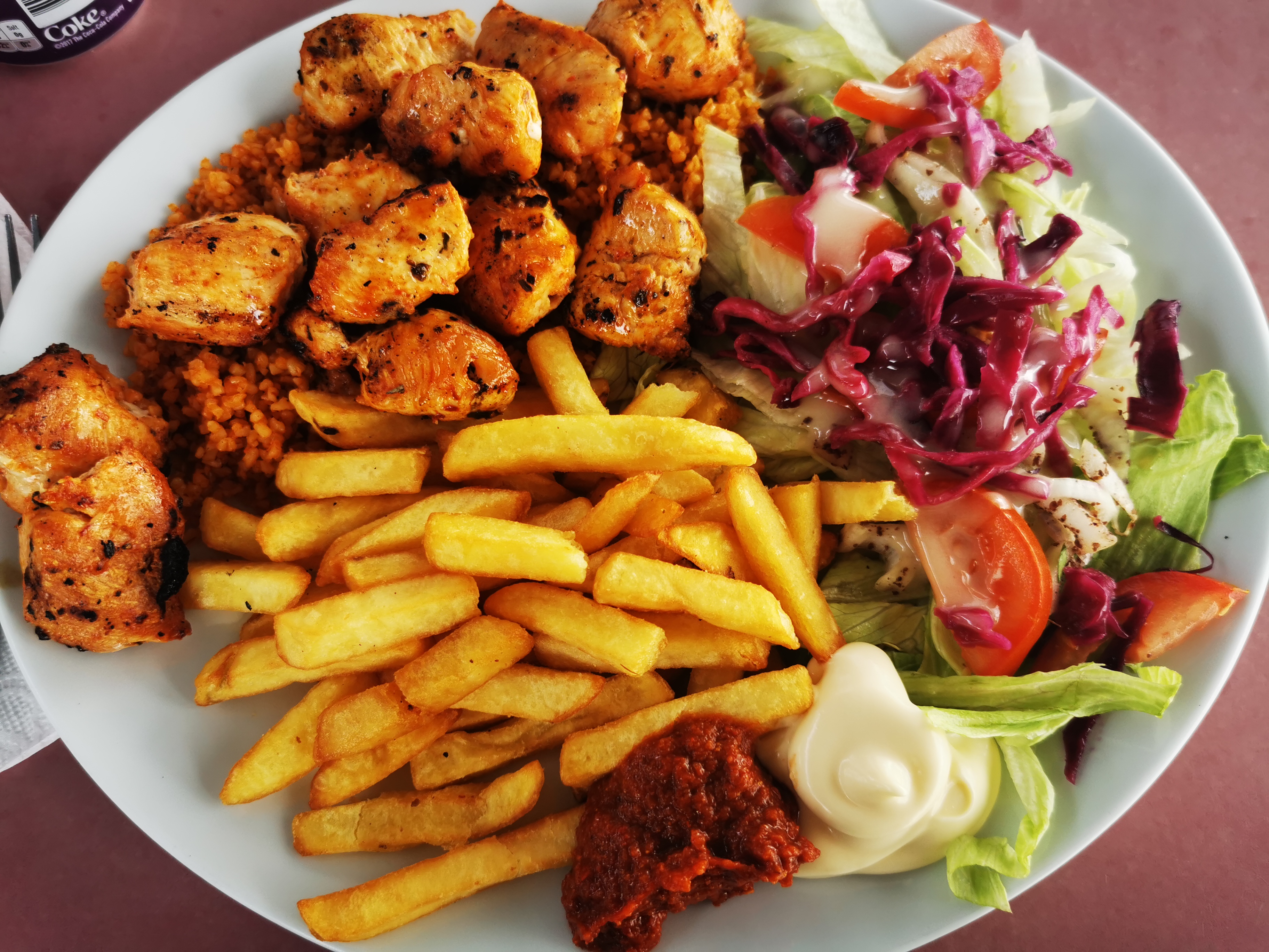 Assiette doner très très copieuse et excellente avec légumes frais et blé, à part les frites surgelés pas terribles dommage! Le restaurant ne sert pas d'alcool pour info. Cela n'a rien à voir avec un kebab lambda salade tomate oignon... Je recommande. Par contre nos Pass sanitaires n'ont pas été demandés...