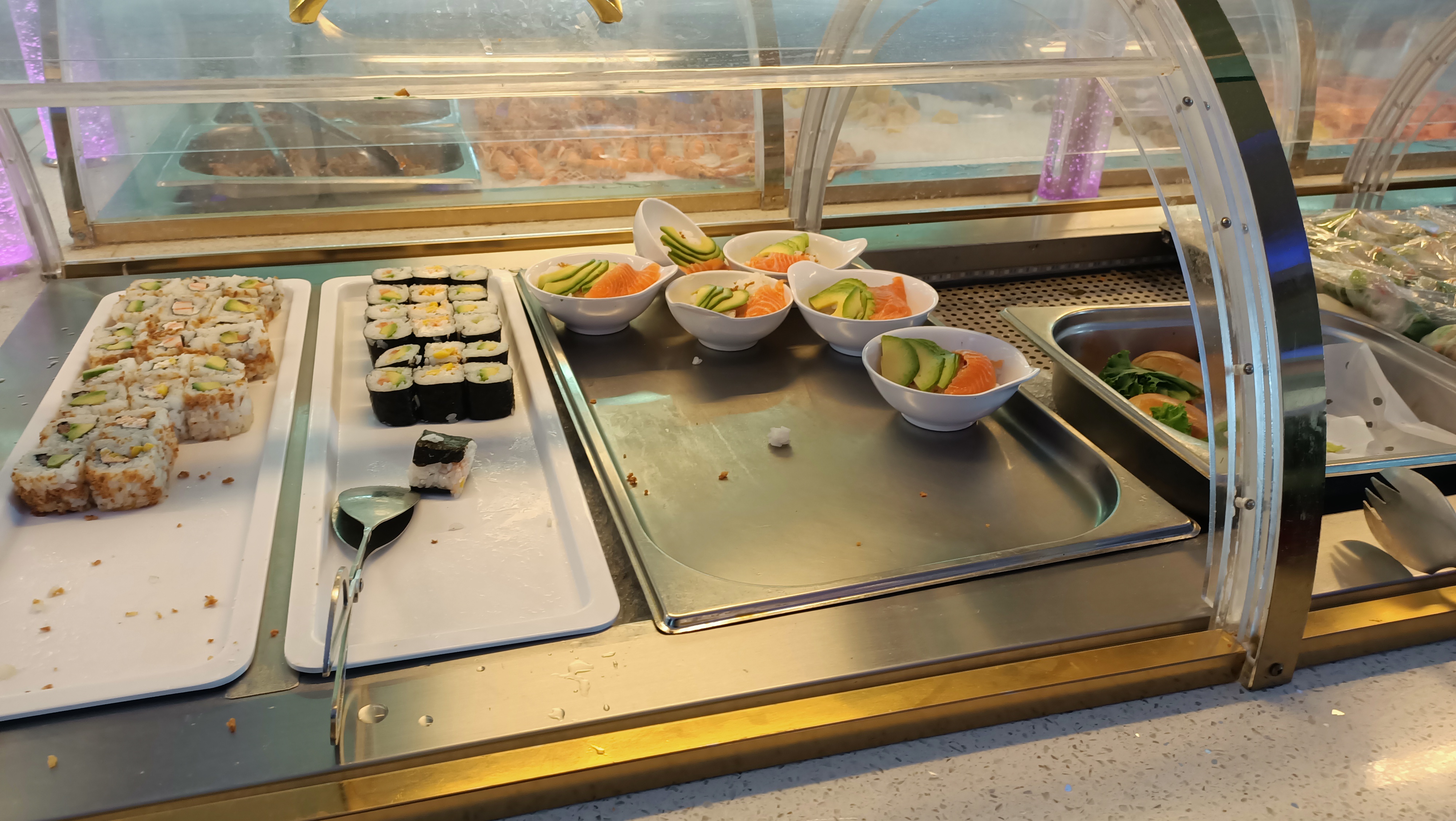 Beaucoup de choix par rapport aux autres buffets à volonté asiatiques. Les sushis sont très variés. Tout est bon. Bon rapport qualité /prix