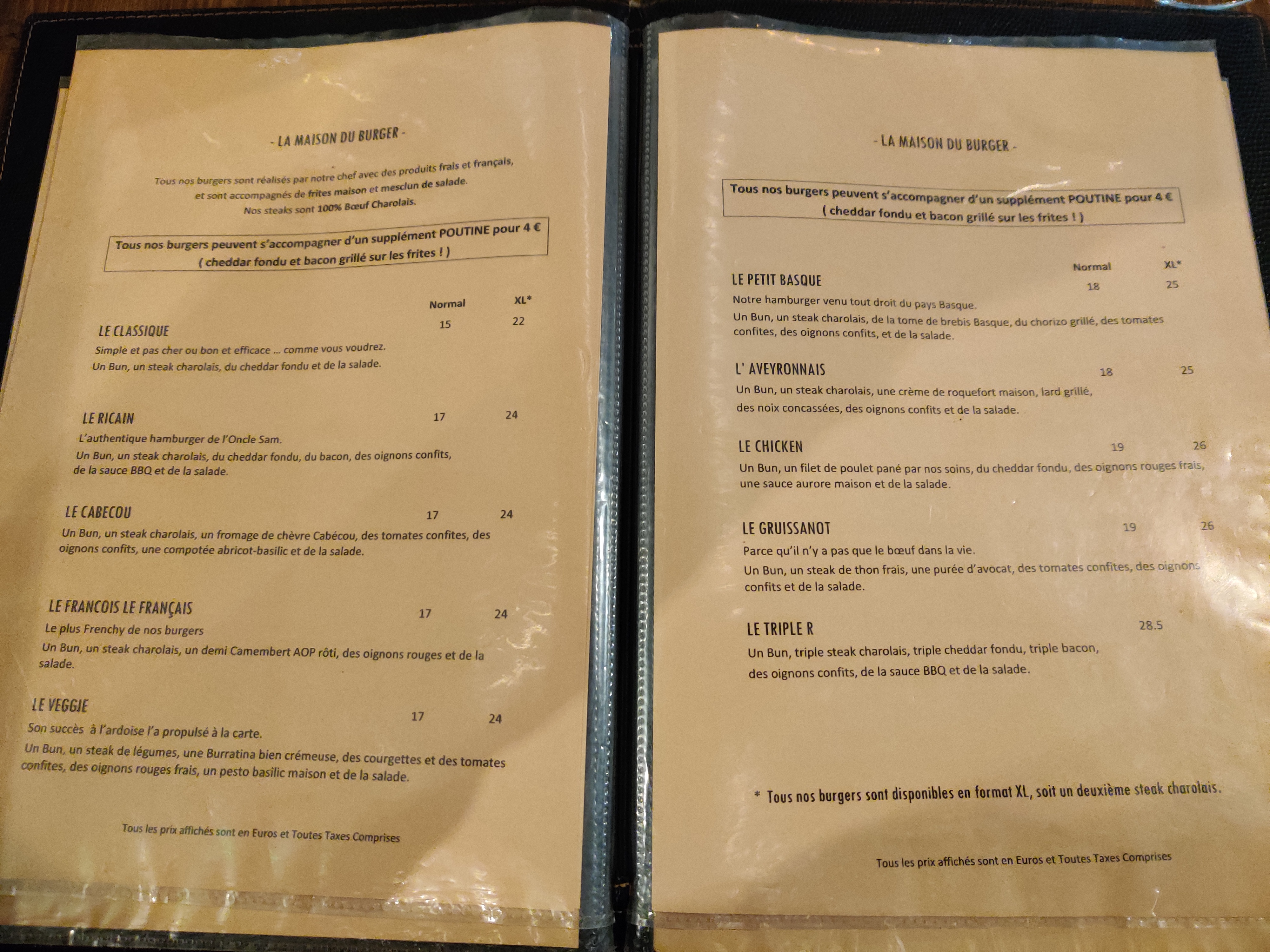 Nous sommes venus un samedi soir sans réservation, le personnel nous a trouvé une table malgré tout. Une cuisine riche et généreuse, les burgers sont impressionnants. Difficile de finir son dessert 😉 Je recommande 🤩.