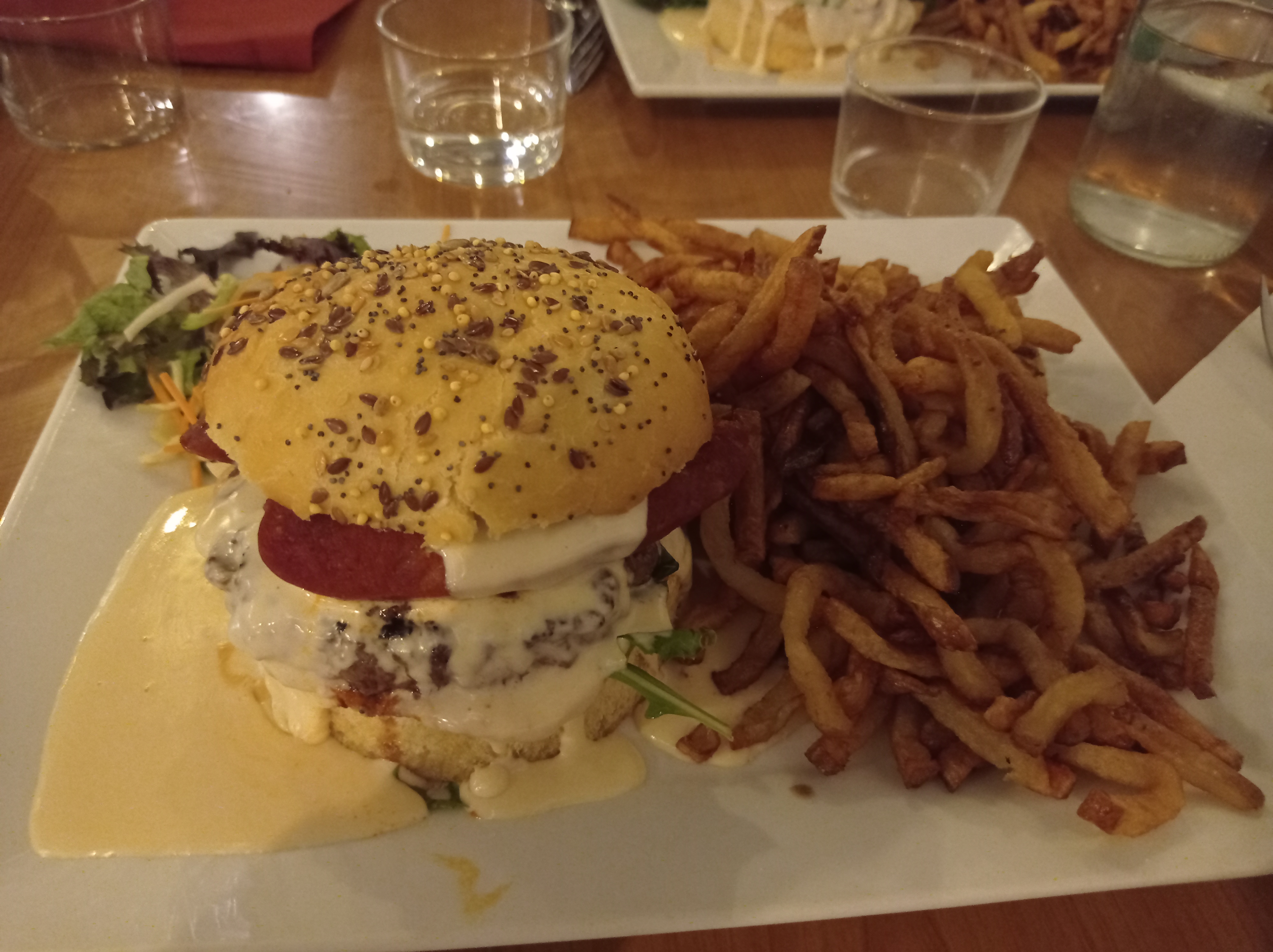 Excellent ! On s'est régalé avec nos burgers bien garnis et nos frites maison. Je n'ai même pas pensé à faire des photos !!😉😁😍😍les prix sont un peu élevés, mais je recommande quand même !