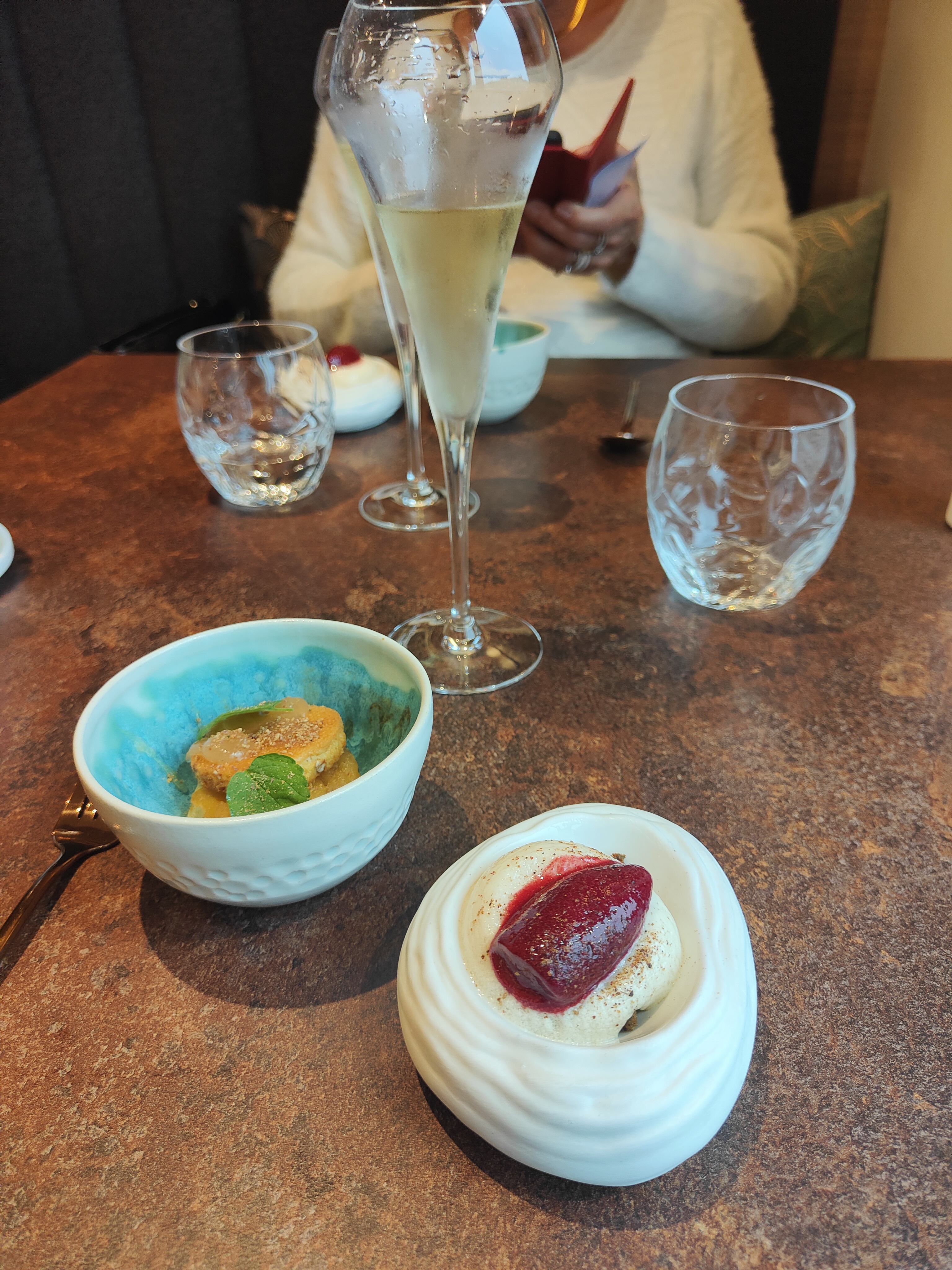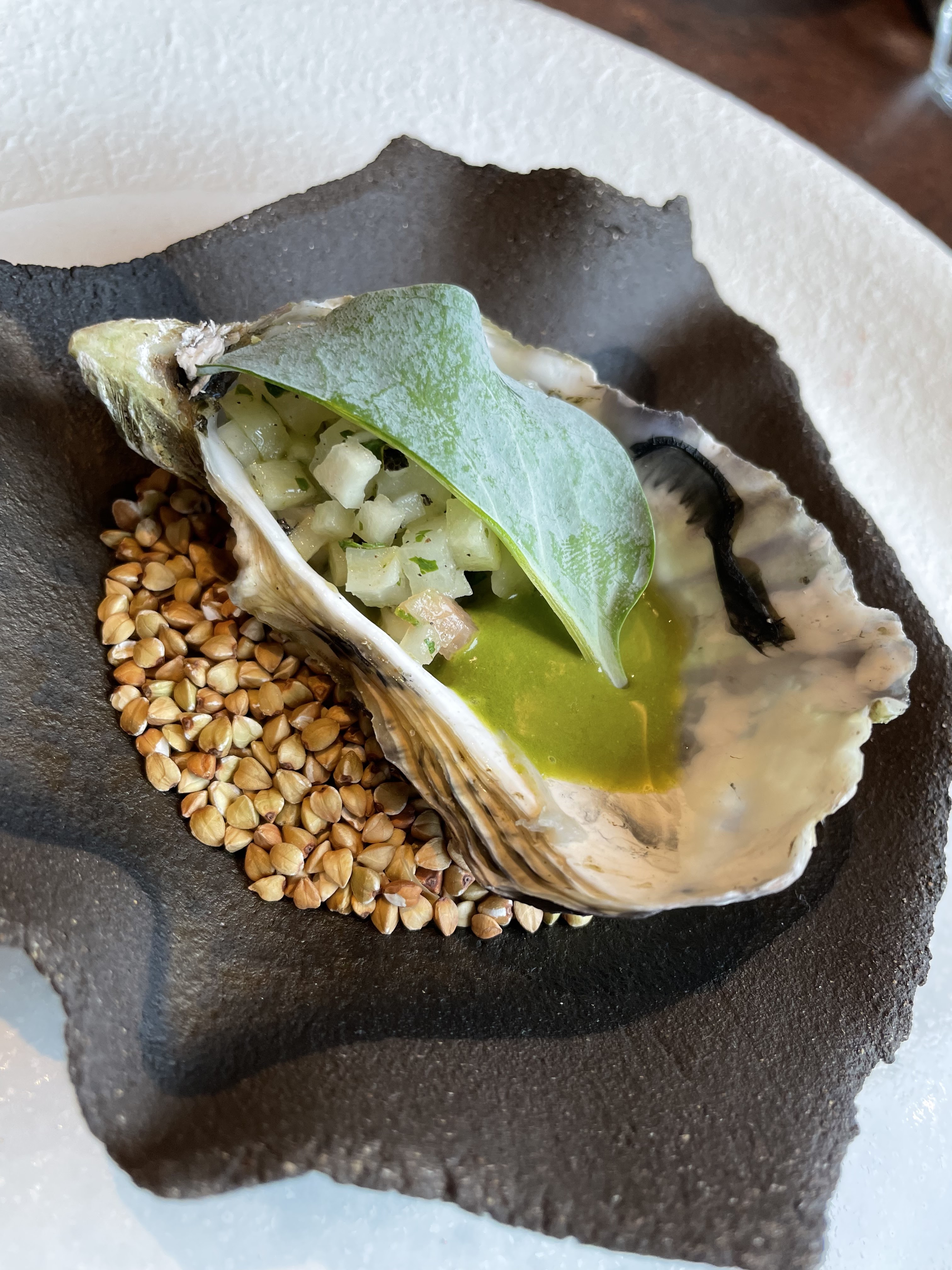 Très belle découverte de ce restaurant avec une cuisine raffinée. Tout nous a plu avec un coup de cœur pour l'huitre chaude, les sauces et le dessert. Nous avons pris le menu 7 services et ne regrettons pas. La vaisselle est exceptionnelle !! sauf les verres....pas dignes de ce restaurant et nous l'avons mentionné. Aussi, j'ai noté avec un 4 car il y a un vrai bémol....le service. Vraiment dommage de ne pas correctement formé les jeunes en amont. Pas de proposition d'apéritif, une proposition de vin sans avoir vérifié qu'il était dispo en cave (il n'y en avait plus), des débarrassages approximatifs, pas de service du vin et pas toujours de l'eau. Bref, il faudra s'améliorer pour monter en gamme. Nous reviendrons mais...pas tout de suite