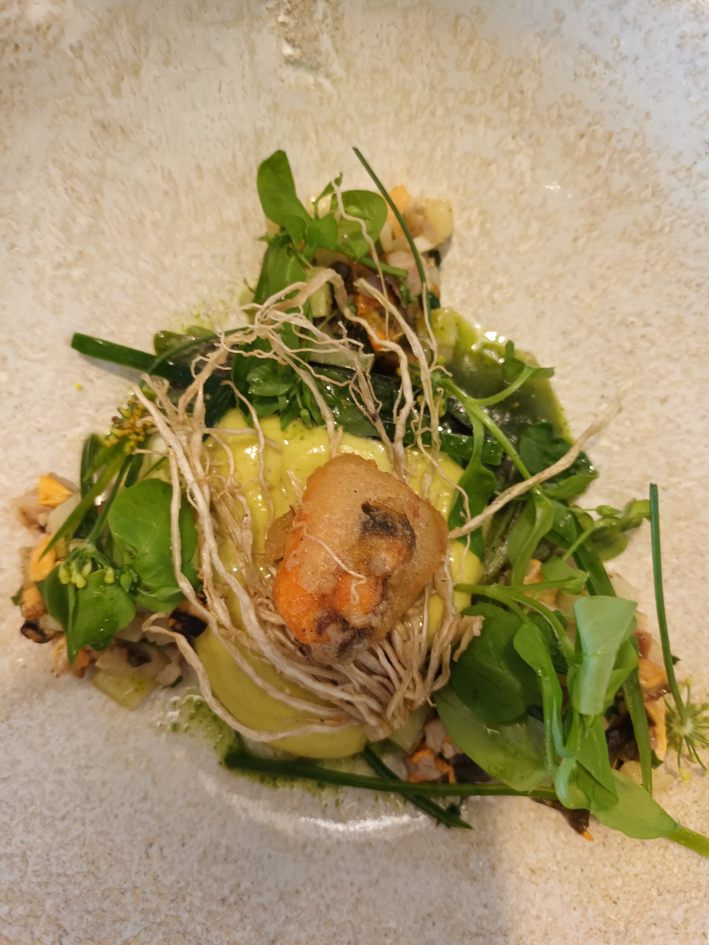 Tout d’abord le lieu est charmant et accueillant, une décoration sobre mais réfléchi qui évoque la nature avec le ciel et la terre. Ensuite vient l’assiette, enfin plutôt les assiettes. On retrouve ici toute la créativité du chef, les plats sont gourmands, généreux, bien présenté et créatifs. Le chef a réussi à faire aimer les huîtres à ma compagne (ce qui relève de l’exploit). Gros coup de cœur pour le dessert signature qui est un délice. L’équipe en salle est vraiment au top, on sent le côté familiale du restaurant. Pour finir, les prix sont très corrects pr rapports a tout ce que nous avons mangés, donc c’est une soirée réussi sur tous les points. Merci encore au chef et à son équipe pour cette soirée.