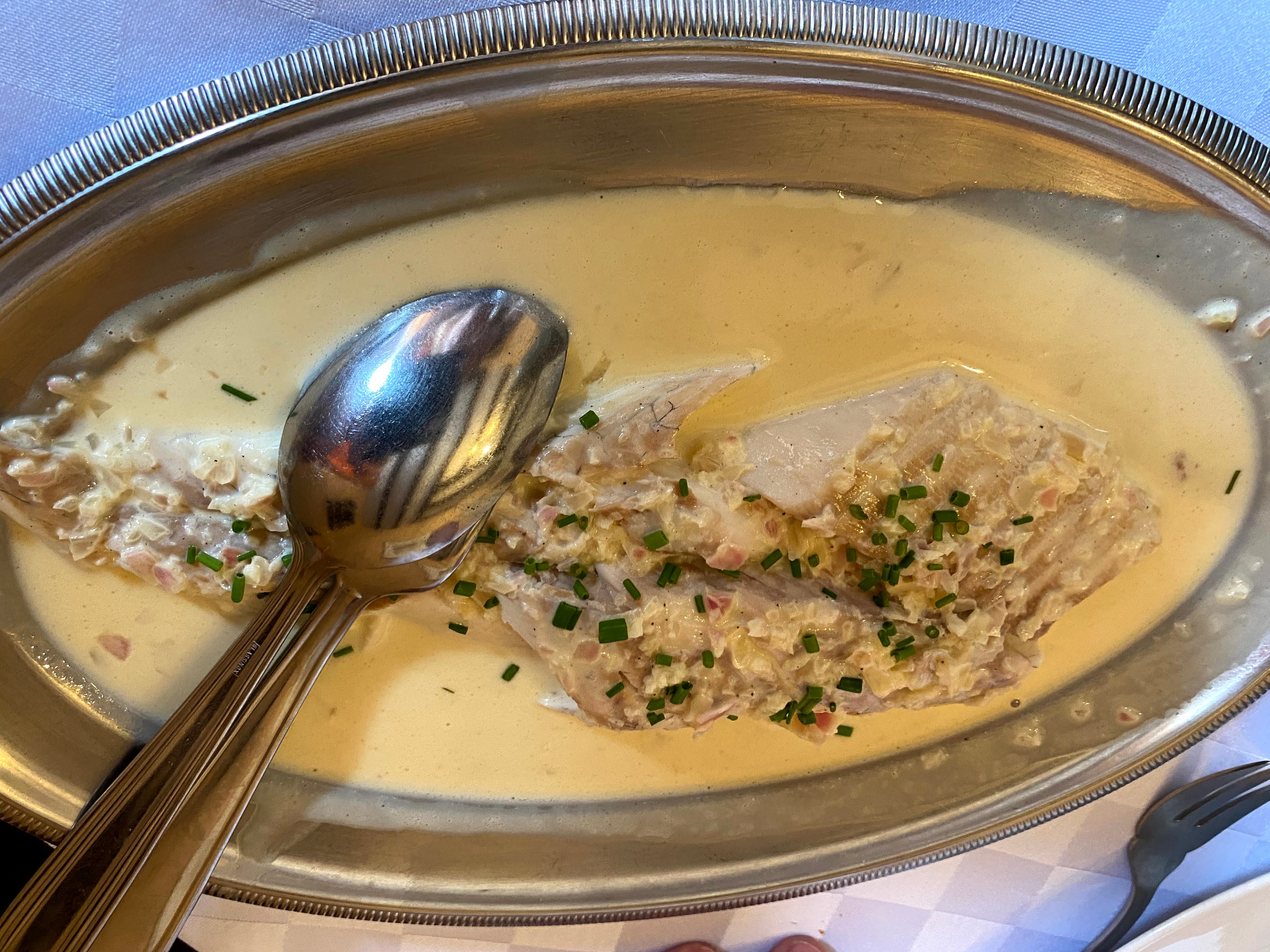 Exceptionnel! Étape dans notre chemin vers la maison de Colette, hasard de la route....à goûter absolument le brochet!