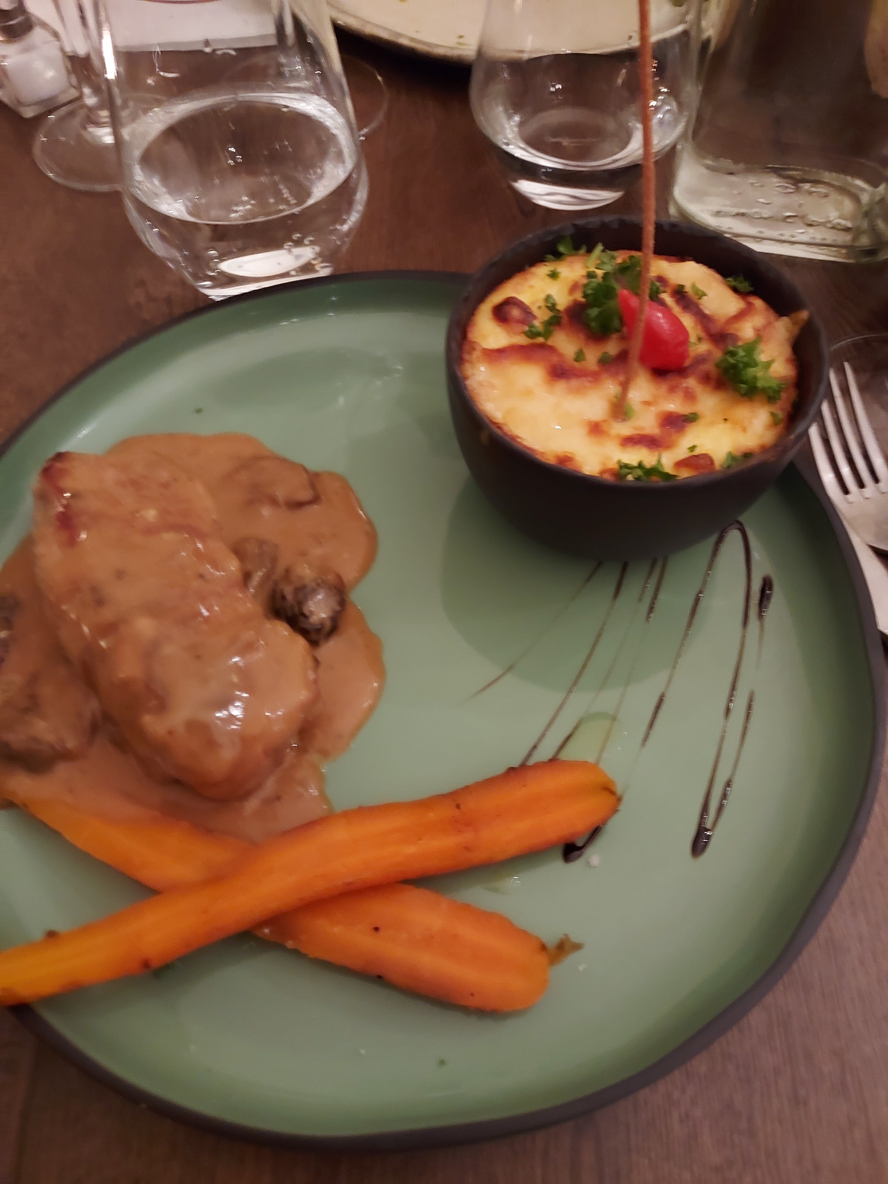 Bon repas ! Seul le plat principal était un peu moins, il fallait un peu plus de sel/poivre. De plus, un vin très agréable et serviable et très savoureux.