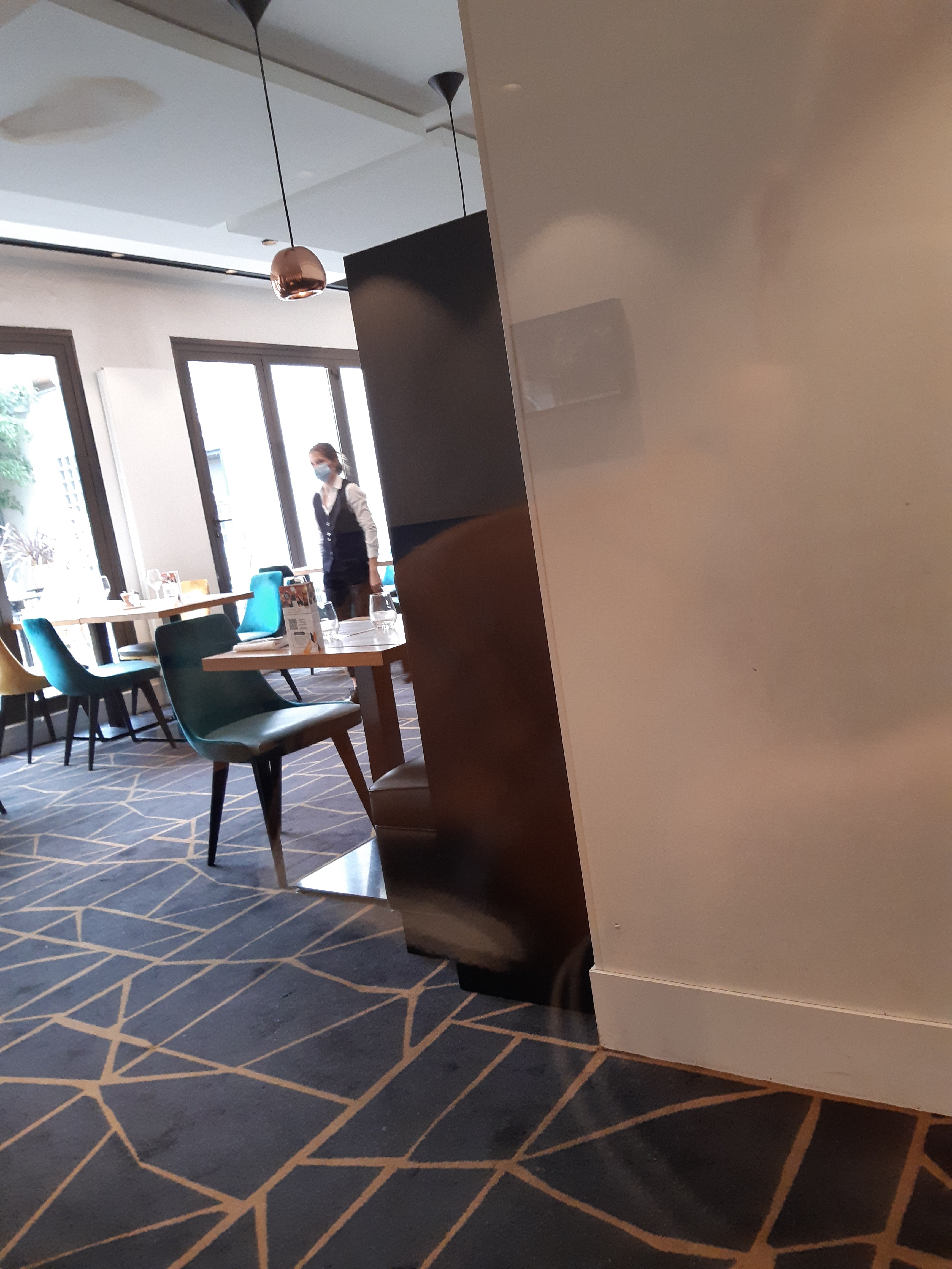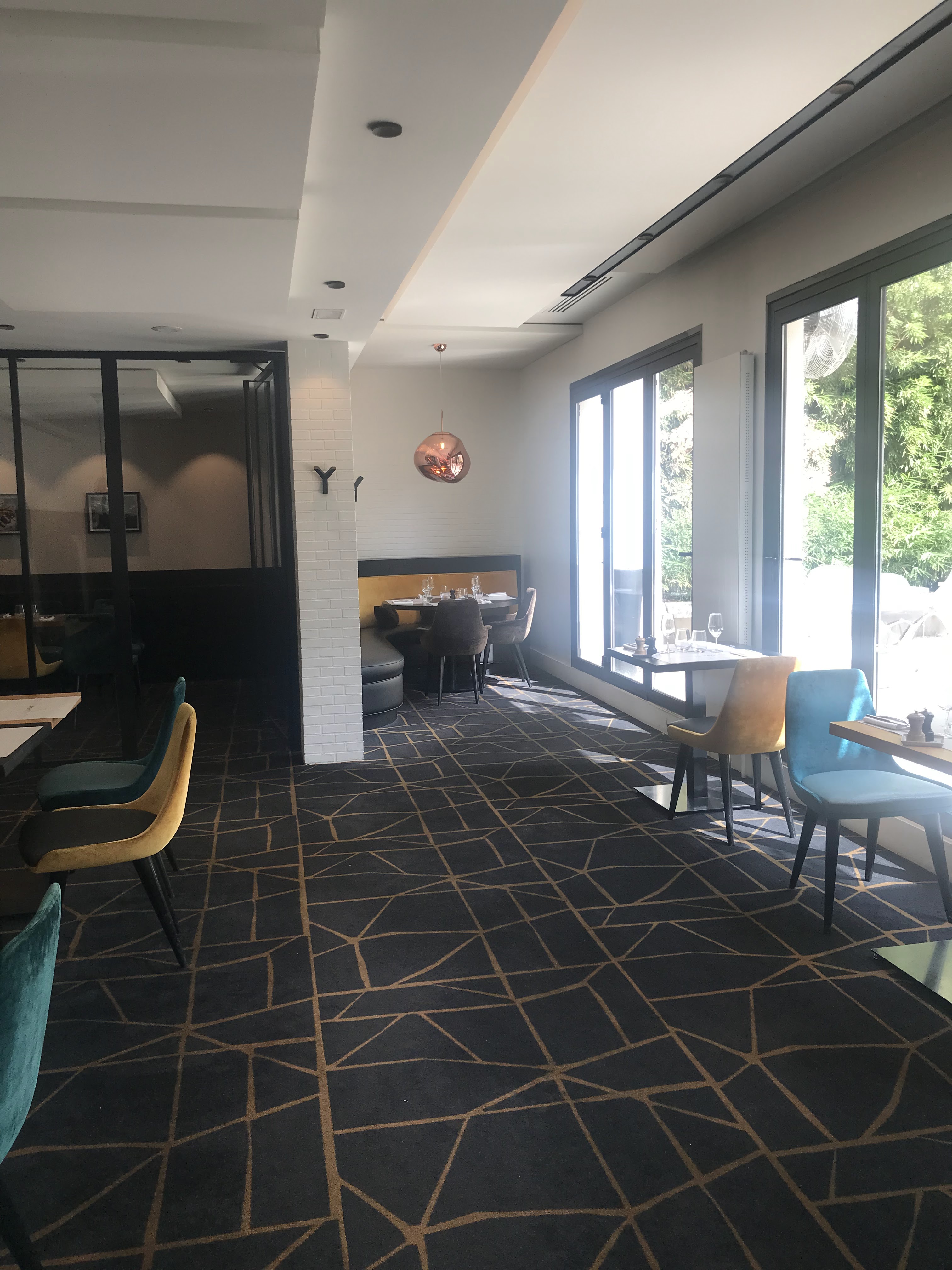 Avis très mitigé sur cet endroit - nous étions 6 convives. Tout d'abord une entrée condamnée qui ne met pas assez en valeur l'entrée annexe. Restaurant situé dans un hotel de bon standing: décoration et ambiance feutrée très agréable avec terrasse très intimiste et agréable. Service à l'écoute et réactif. Par contre grande déception concernant les plats: entrées tel que pâté en croute servi en tranche trop fines. 3 convives ont demandé du Poulet servi avec des pâtes totalement spongieuses car trop cuites et imbibées d'eau : nous nous croyions à une cantine scolaire. Absence de présentation dans les assiettes. Décevant de recevoir une telle mauvaise qualité gustative au vu du standing et du prix des assiettes. Cuisine à revoir définitivement !