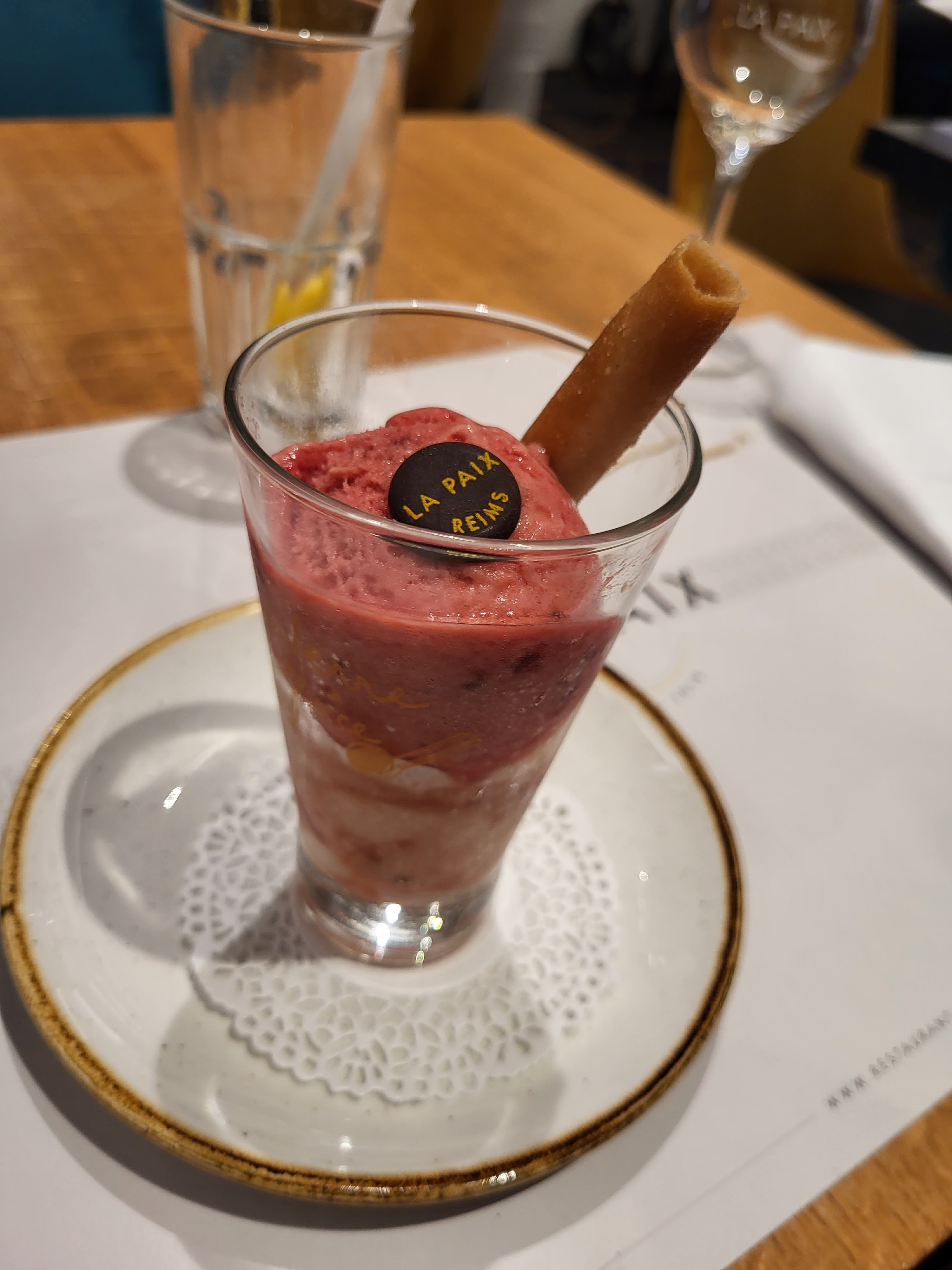 Excellent cheescake aux gâteaux roses de Reims.. Pas trop sucré et généreuse portion : Je recommande.