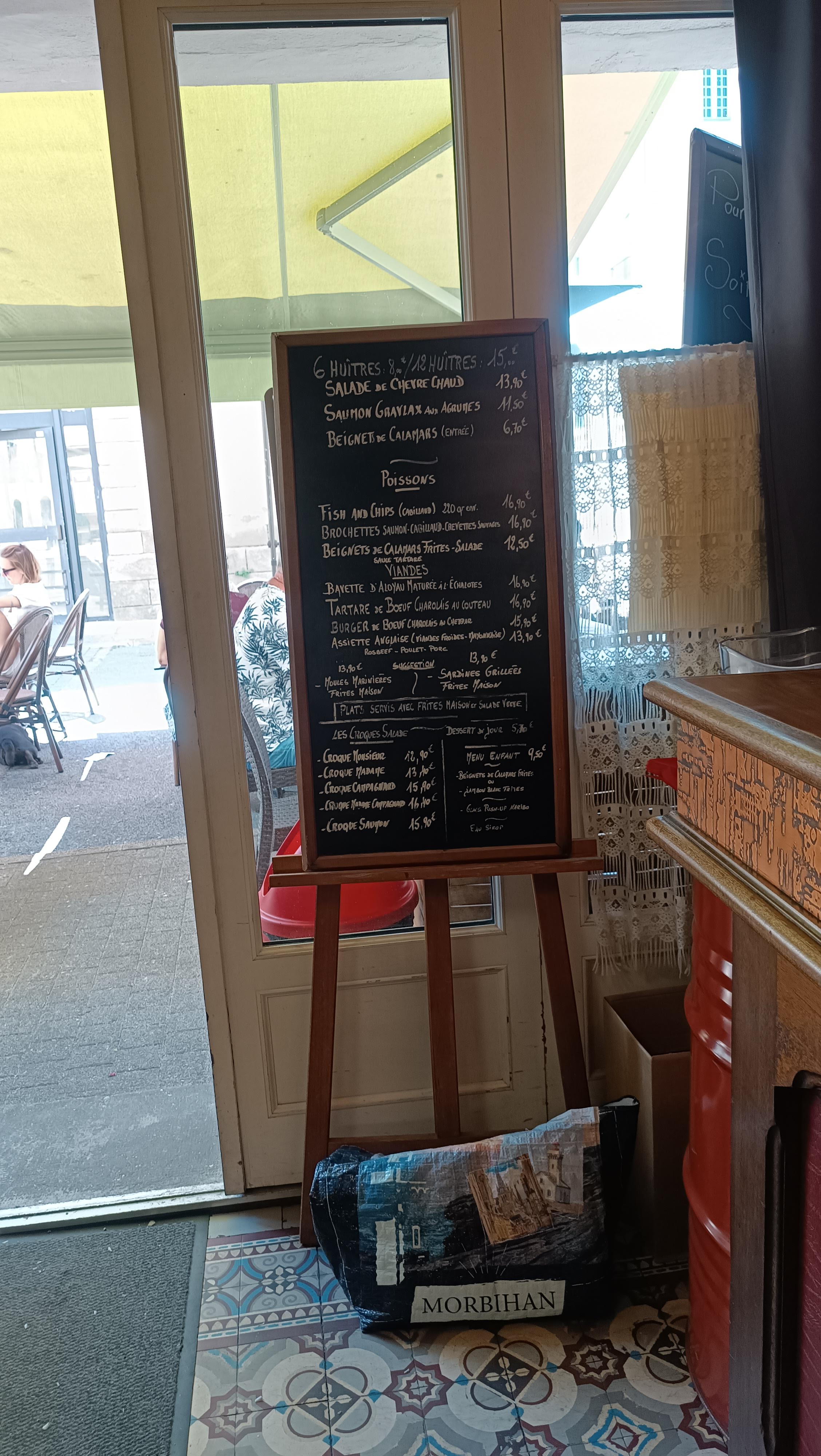 Si vous recherchez une cuisine sans prétention mais délicieuse, venez ici. J'ai pris les sardines, ma femme est allée chercher du fish and chips. Les deux plats étaient délicieux. Le rapport qualité prix est excellent. La sélection de vins était également bonne. Je pense que nous reviendrons pour un autre déjeuner. Les moules et les croques sur la table des voisins semblaient également alléchants. Dans l'ensemble, c'est une bonne trouvaille. Mise à jour : nous y sommes allés une deuxième fois pour tester les croques. J'ai opté pour la version campagnarde madame avec des andouilles à la place du jambon. C'était génial. Valeur de prix épique. Si je restais plus longtemps à Vannes, je reviendrais pour essayer le burger bœuf/saumon qui avait l'air très délicieux.