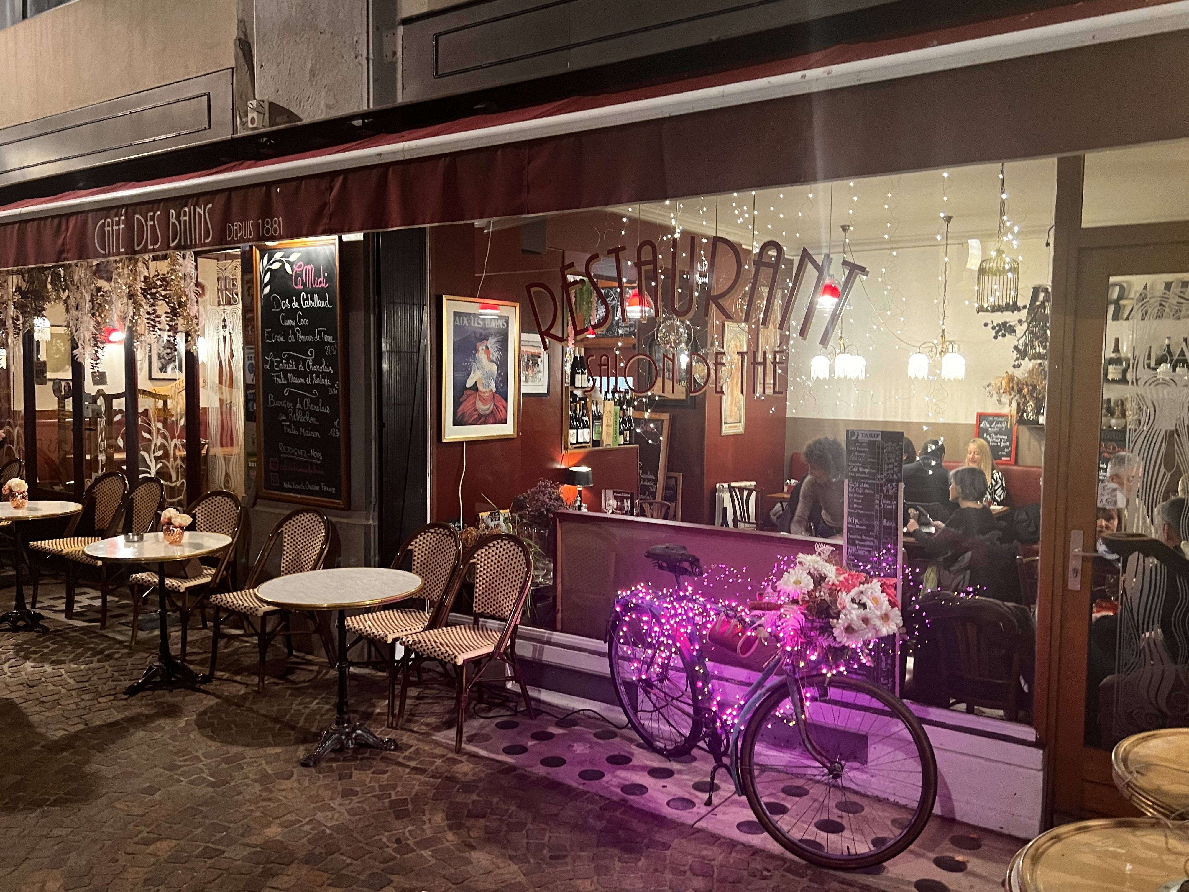 Quel plaisir de dîner au Café des bains ! Tout y est ! L’ambiance cosy d’une brasserie décorée avec goût et tradition. Un accueil et un service aux petits soins avec le sourire. Une cuisine authentique, généreuse fait à base de produits de qualité et préparée avec soin par le chef. L’entrecôte est une tuerie et ne pas repartir sans avoir goûter les desserts tous faits maison. Un repère à foodie sur Aix les bains. PS: le cake chocolat au Valrhona 1er cru est incontournable selon moi.