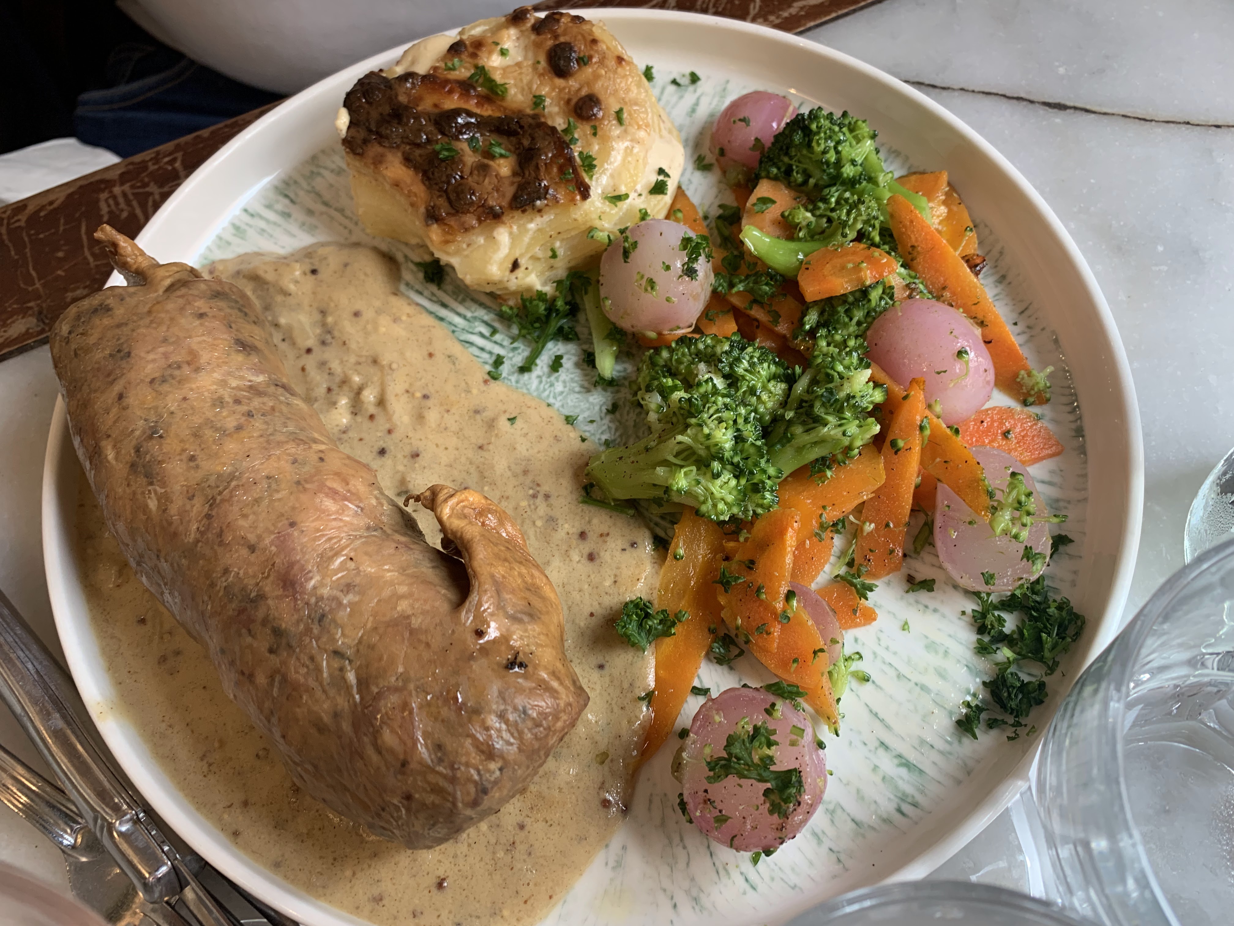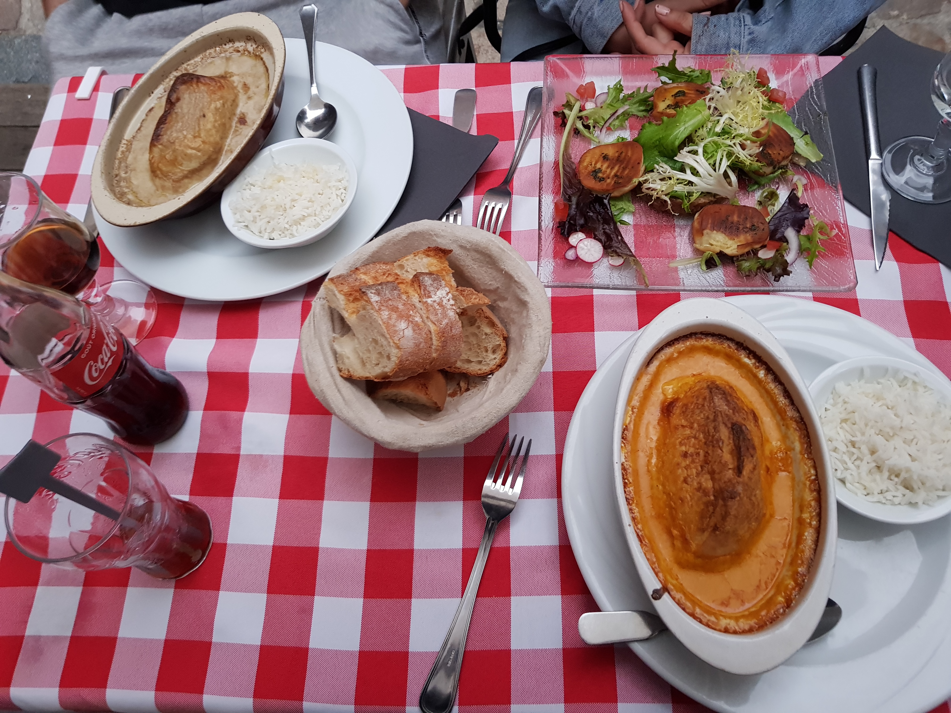 La bouffe et le service étaient super. Nous avons mangé les quenelles au brochet et à la volaille, avec des salades lyonnaises et canuts. Comme dessert, une mousse au chocolat et tarte la praline. Les serveurs étaient très sympas.