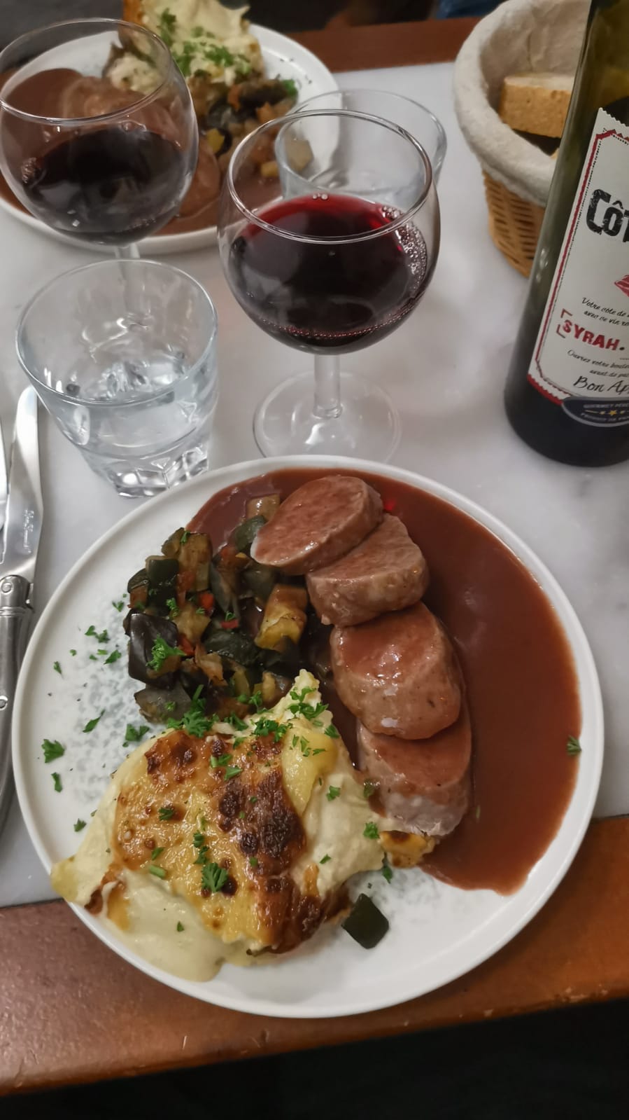 Grande déception sur la quantite; en guise de saucisson lyonnais, on nous a servi 3 fines tranches de saucisson.....accompagné, il faut le reconnaître d'un très bon gratin dauphinois. Quant à l'île flottante, on nous a présenté des blancs en neige Non CUIT. très décevant pour la capitale de la gastronomie...