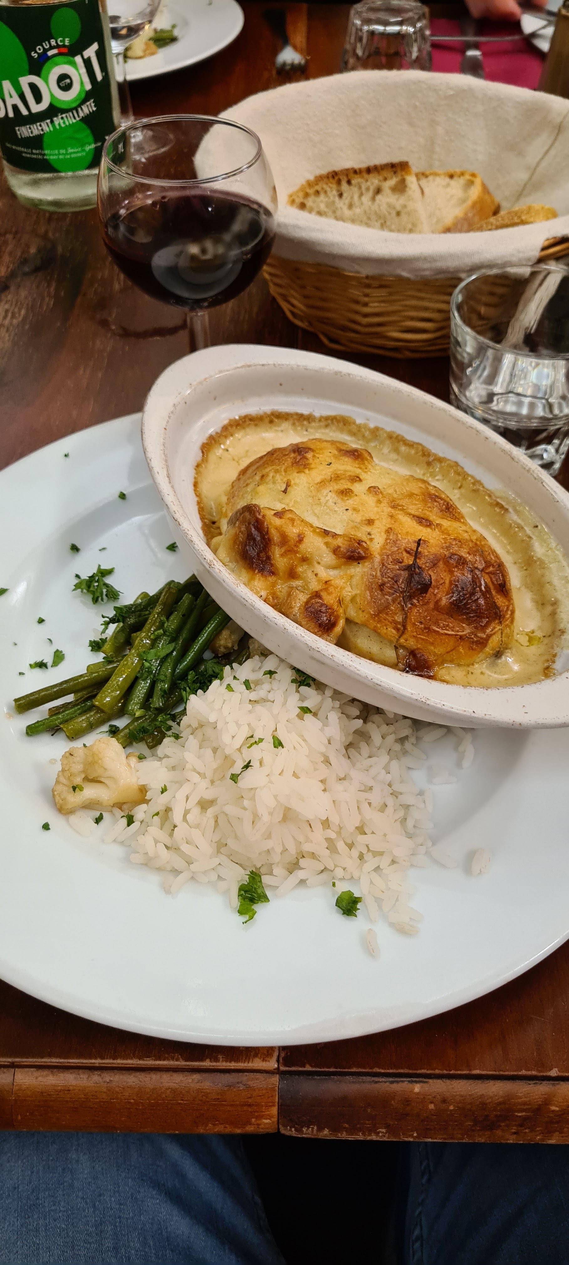 En passant la rue en dessous la terrasse nous a appelé, il n'y avait encore personne mais très vite cela s'est rempli ! Pas de réservation mais pas de souci. Menu Quenelle 23 Euros, on s'est régalé et tout ça avec un service impeccable et le sourire (oui cela se voit même avec le masque 😄).