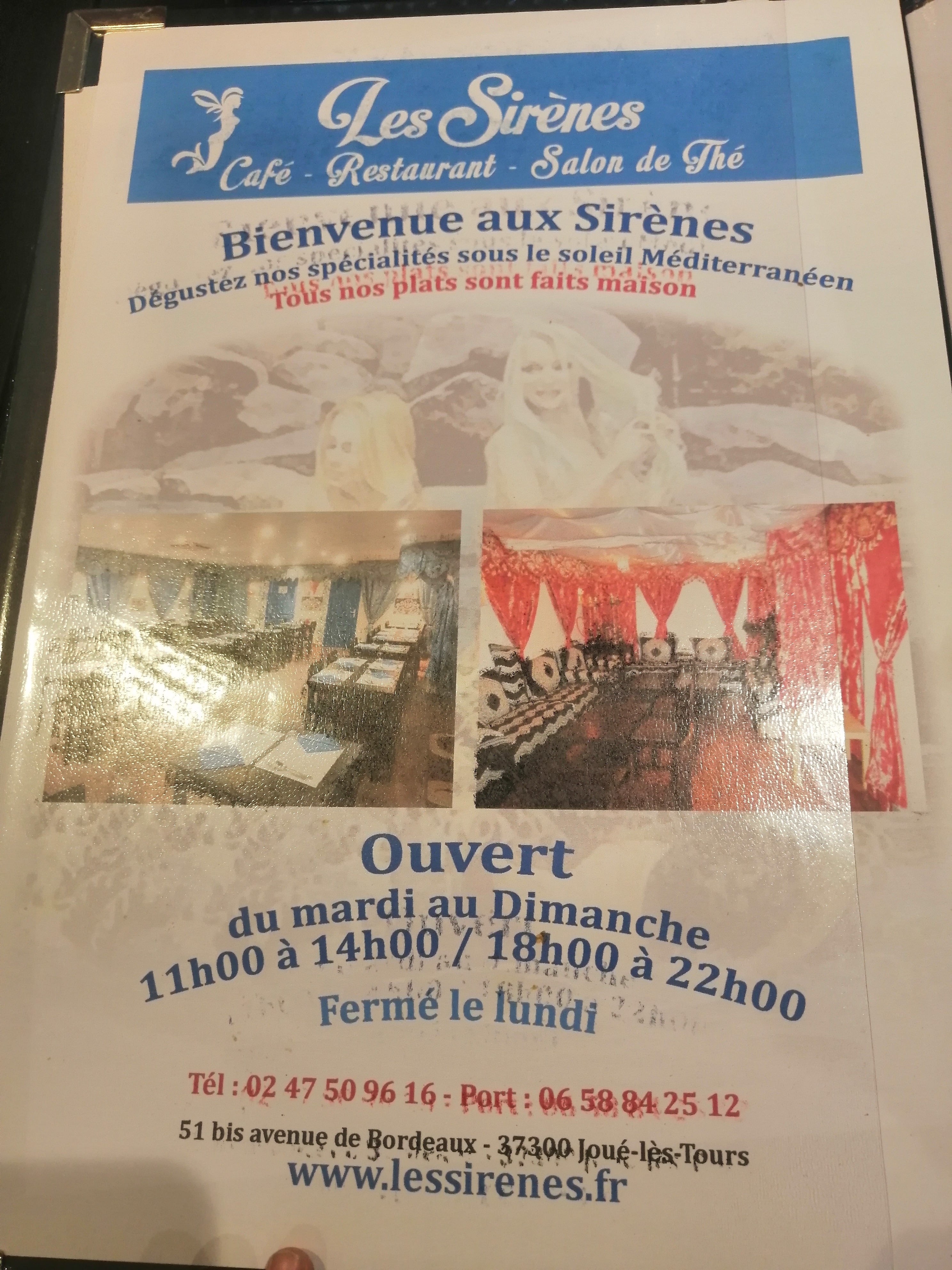 Accueil formidable, saveurs authentique, et fraîcheur, fait maison Khaled est un hôte qui nous met à l'aise,et nous donne envie de revenir !si vous passez par Tours, arrêtez vous Aux sirènes,sur la route du Sud !