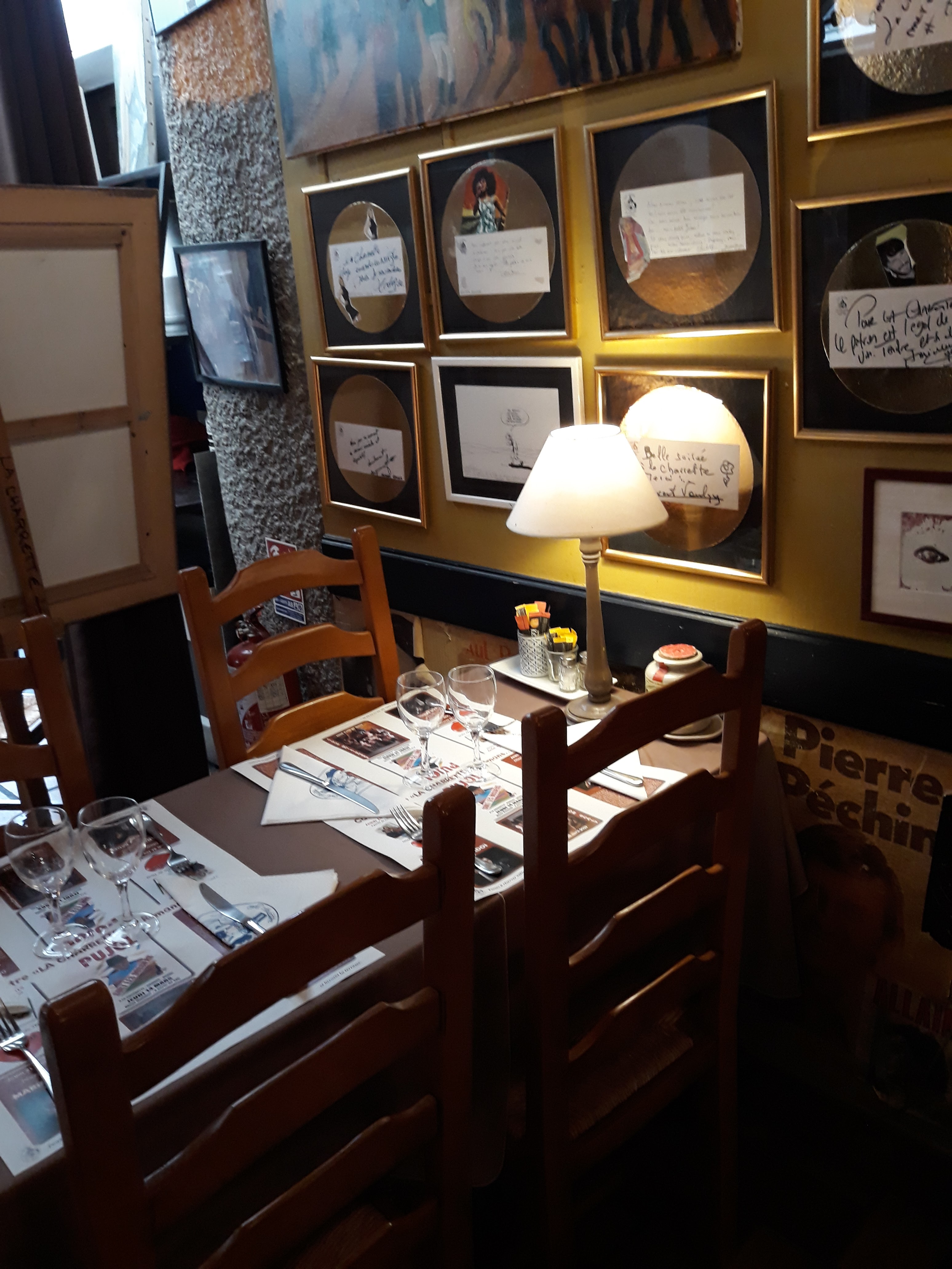 Une ambiance chaleureuse et une décoration atypique. La charette est un lieu chargé d'histoire ou l'on aime se retrouver pour manger ou juste pour déguster un bon vin.
