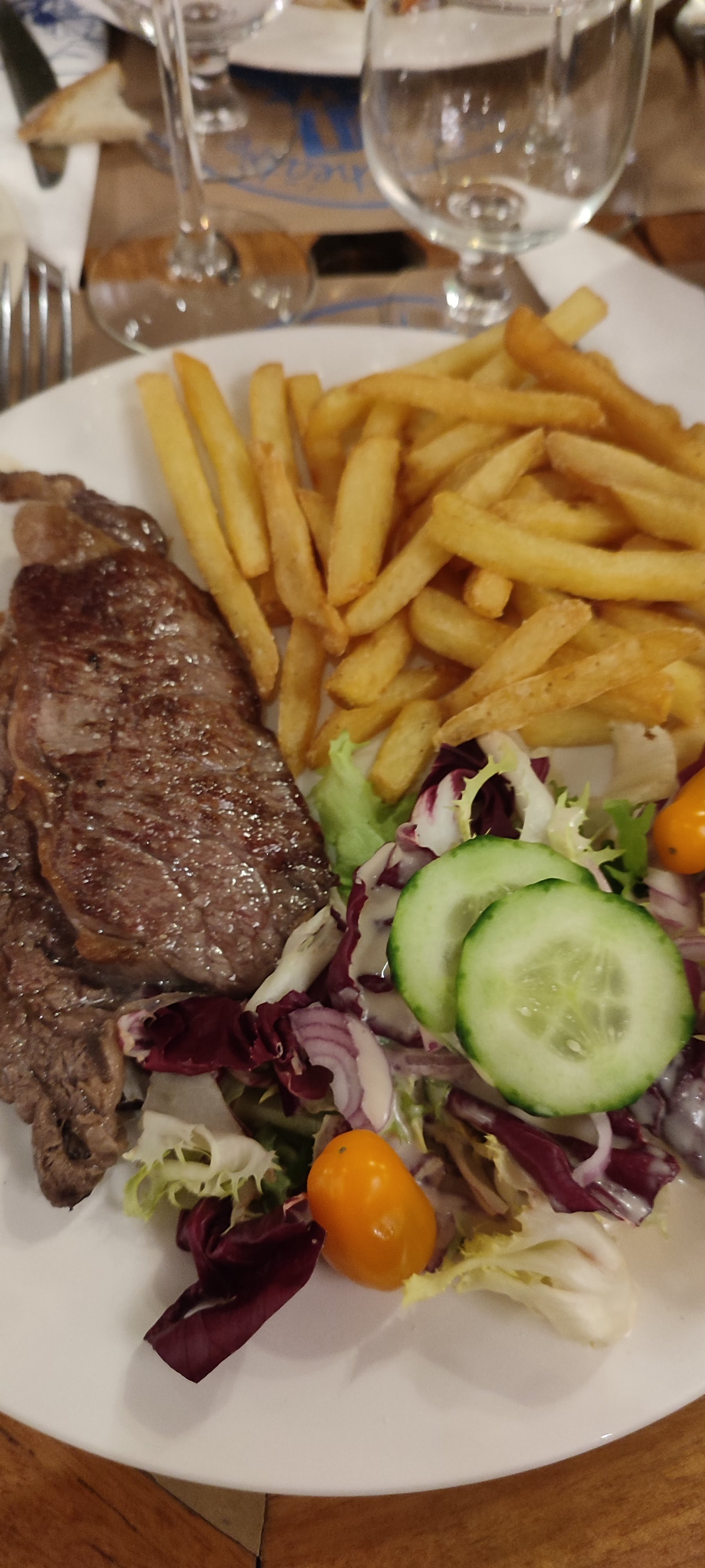 Bifteck entrecôte tres dure impossible à couper et presque immangeable dessert très moyen. Seul le vin un crier Hermitage était vraiment bon.