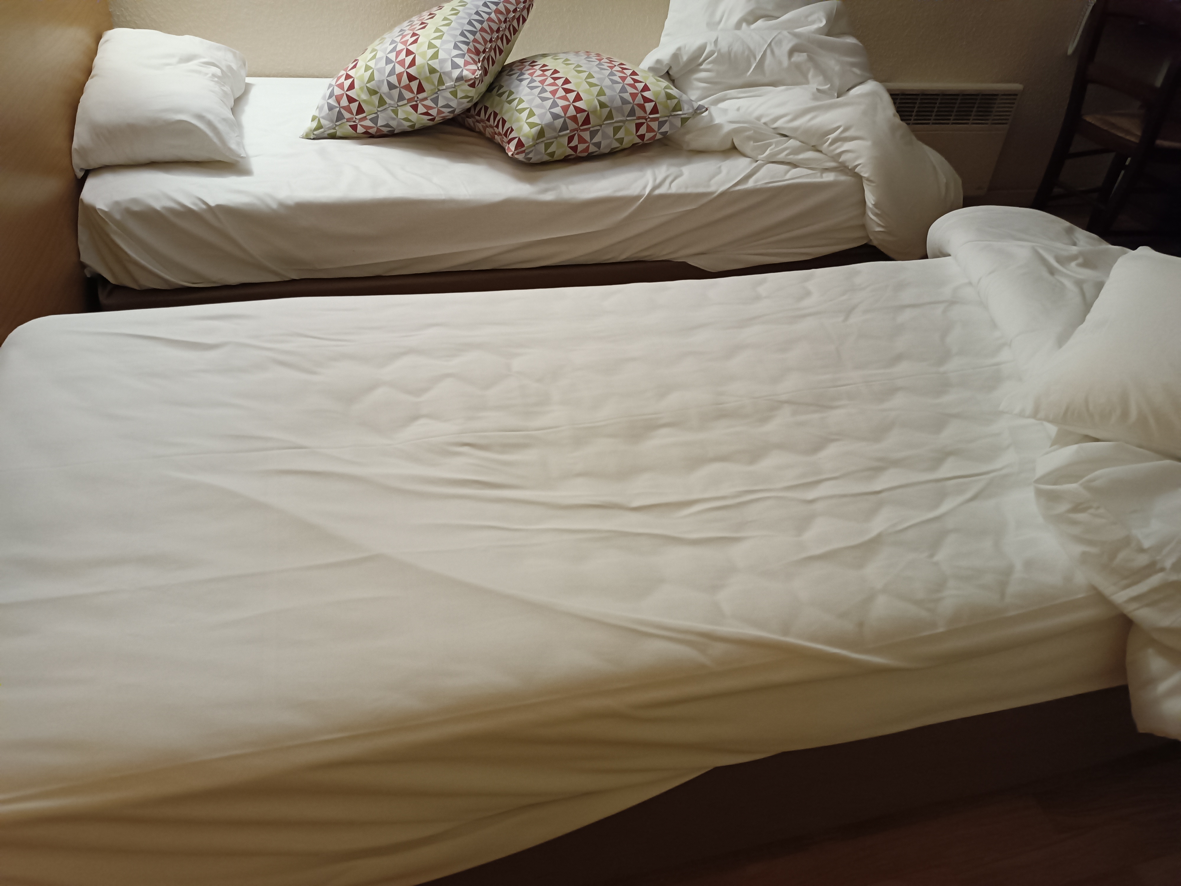 Je m'attendais à mieux pour le prix. La chambre est assez petite et les lits n'étaient pas bien fait. Le réceptionniste n'avait pas trop envie de travailler a juste fait le stricte minimum ( un sourire ça ne coûte rien ). La prise pour pouvoir chargé était loin du lit dommage. L'hôtel se situe au bord d'une route et on entend le bruit des voiture qui passe + la femme de ménage qui rentre dans la chambre avant 10H. Courte nuit. Déçu