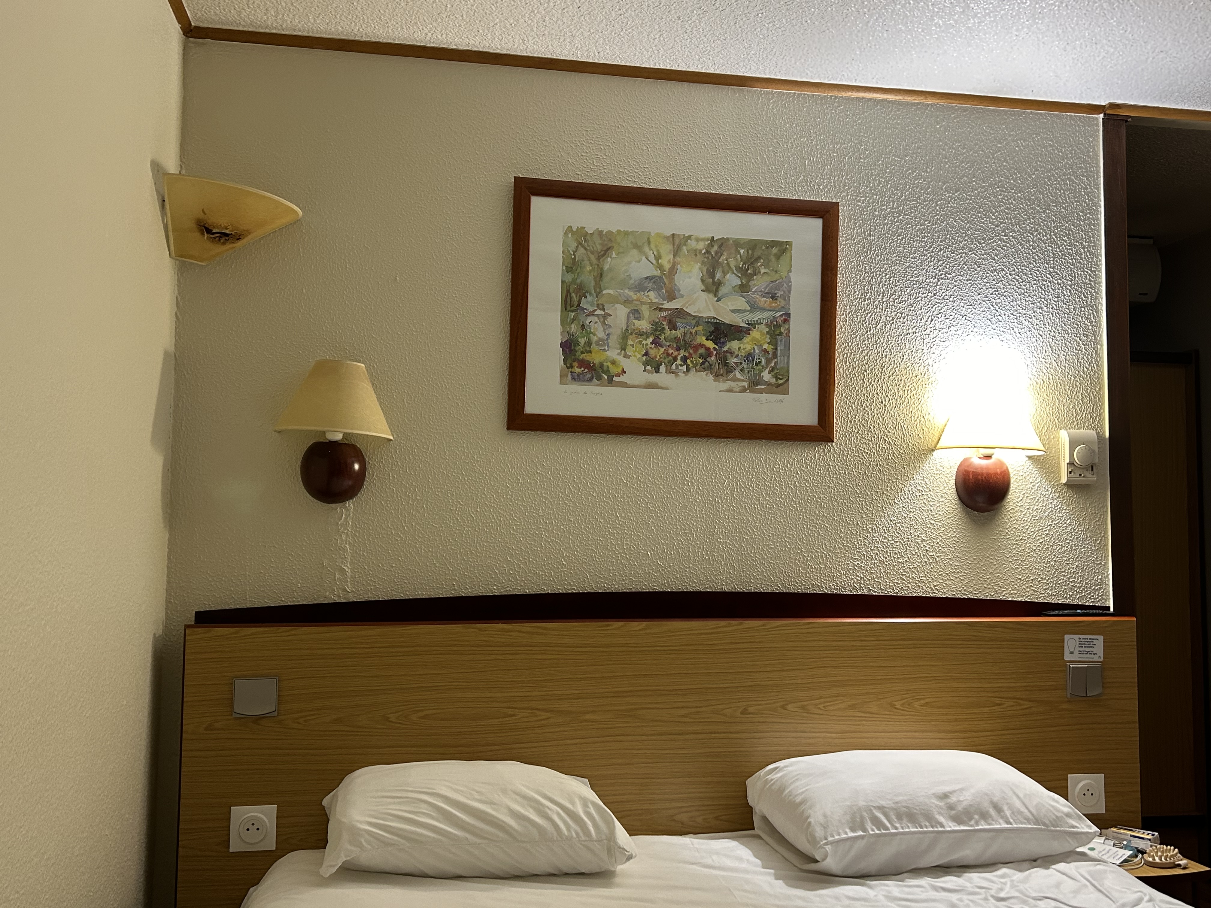 chambre sombre vieillotte, nous avons eu l'impression que les taies d'oreillers n'avaient pas été changées suite au passage des clients précédents, et les oreillers sentent mauvais, il faut les laver régulièrement. un flacon de gel douche des clients précédents encore dans la salle de bains. Passez après les femmes de ménages pour vérifier leur travail autrement repas du soir et petits déjeuners très corrects