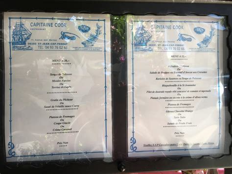 hors saisons (mi mars 2016) mon mari et moi (+nos petits chiens sous la table) découvrons le Capitaine Cook . Quel bonheur de déguster ,des produits extra frais (un lundi midi ) cuisinés avec maîtrise et passion. Un accueil simple et chaleureux , un service professionnel ! Merci Nous reviendrons avec plaisir.