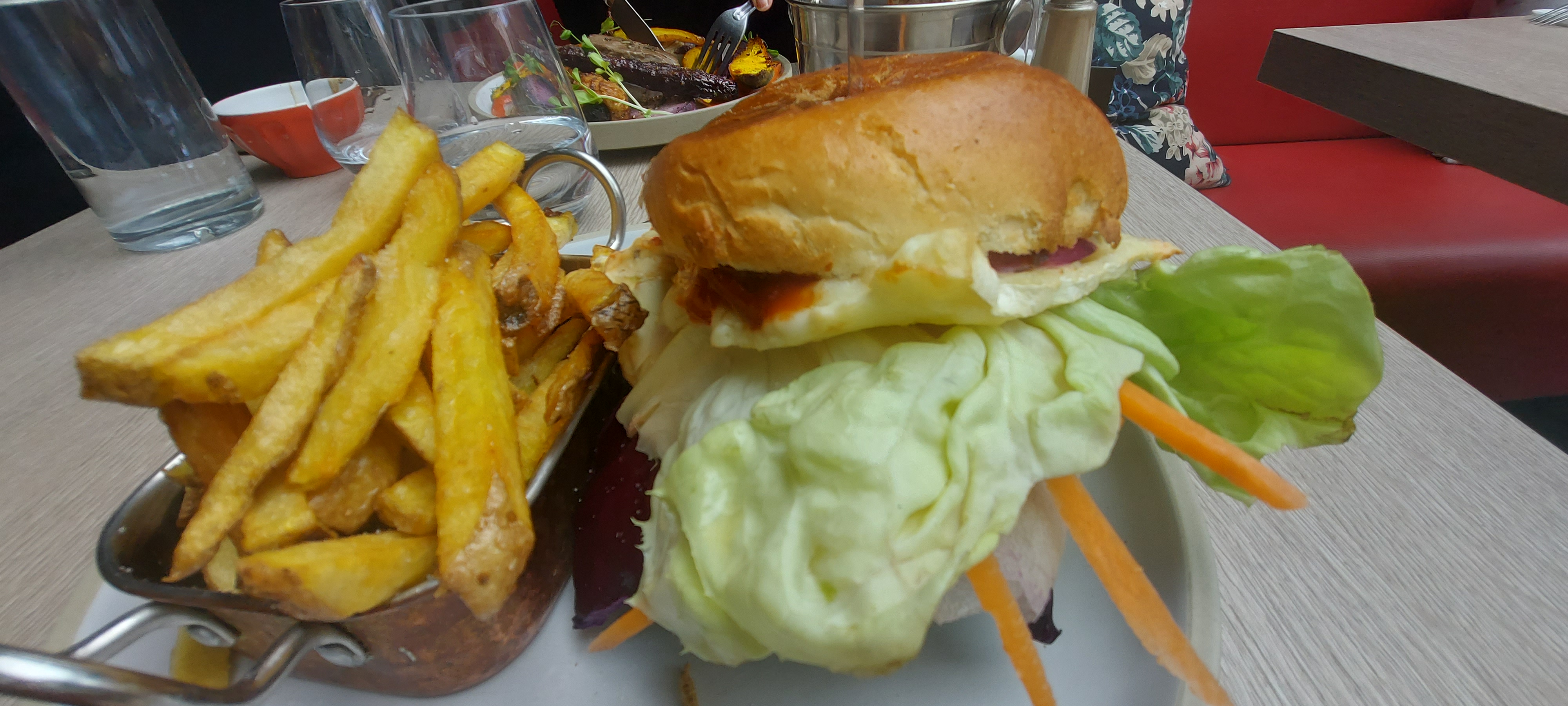 Mon hamburger était délicieux mais mes amis n’ont pas eu la même chance : pièce de bœuf difficile à mastiquer et cookie brulé en dessert - aucune excuse ni même explication - par ailleurs la serveuse n’était pas très aimable pour ne pas être trop sévère avec elle… Très déçu …