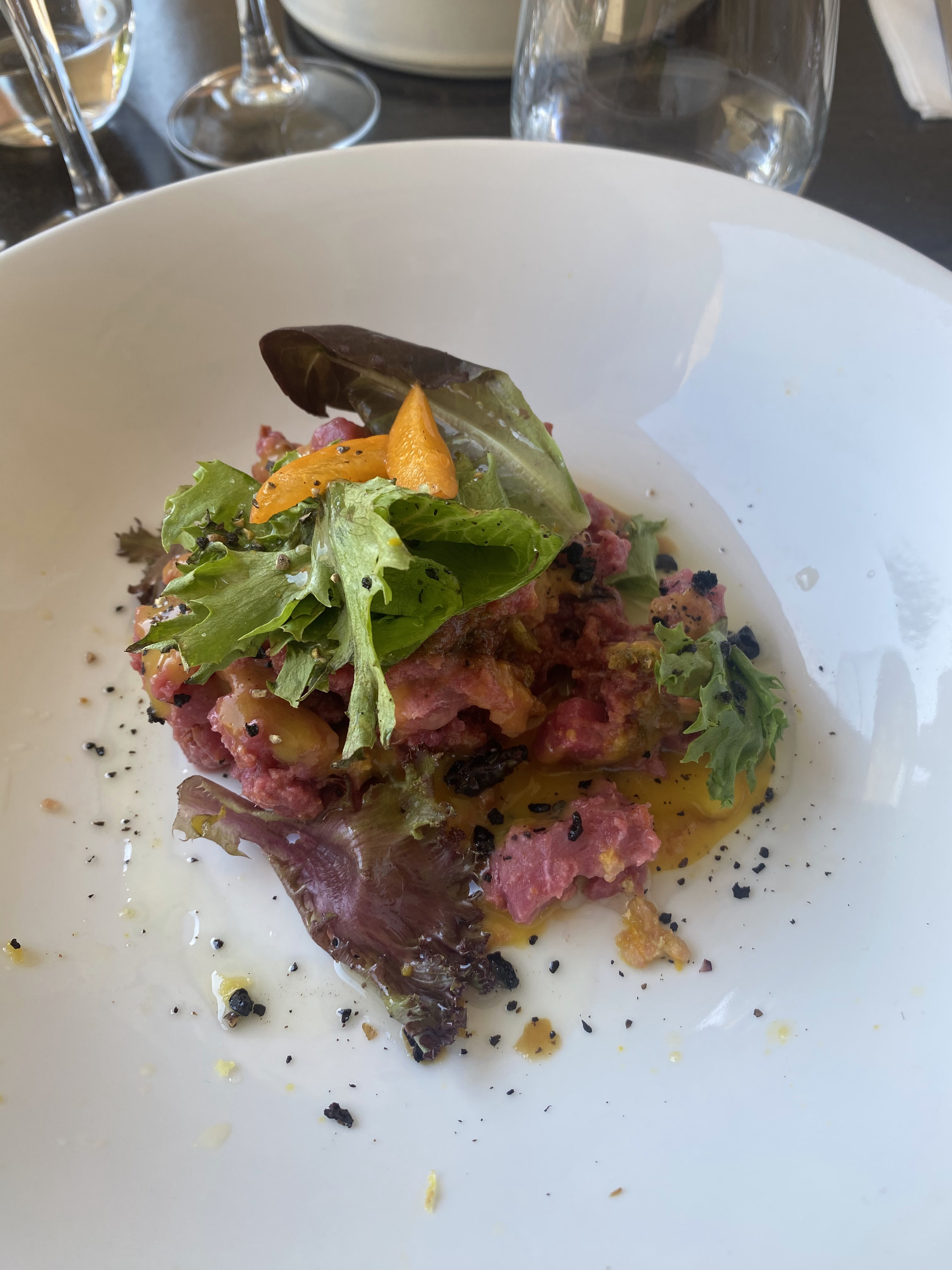Vraiment ce restaurant est à découvrir pour sa cuisine à la fois locale mais aussi étonnante par certains plats inattendus pour les plus curieux. De plus, nous étions un groupe de plus de 20 personnes et le service a vraiment été rapide, efficace et accueillant. Nous avons mangé dehors sous les arcades mais la salle à l'intérieur était très cosy avec verrière et décoration soignée. Bref, si vous êtes dans le coin, voilà une table à retenir !