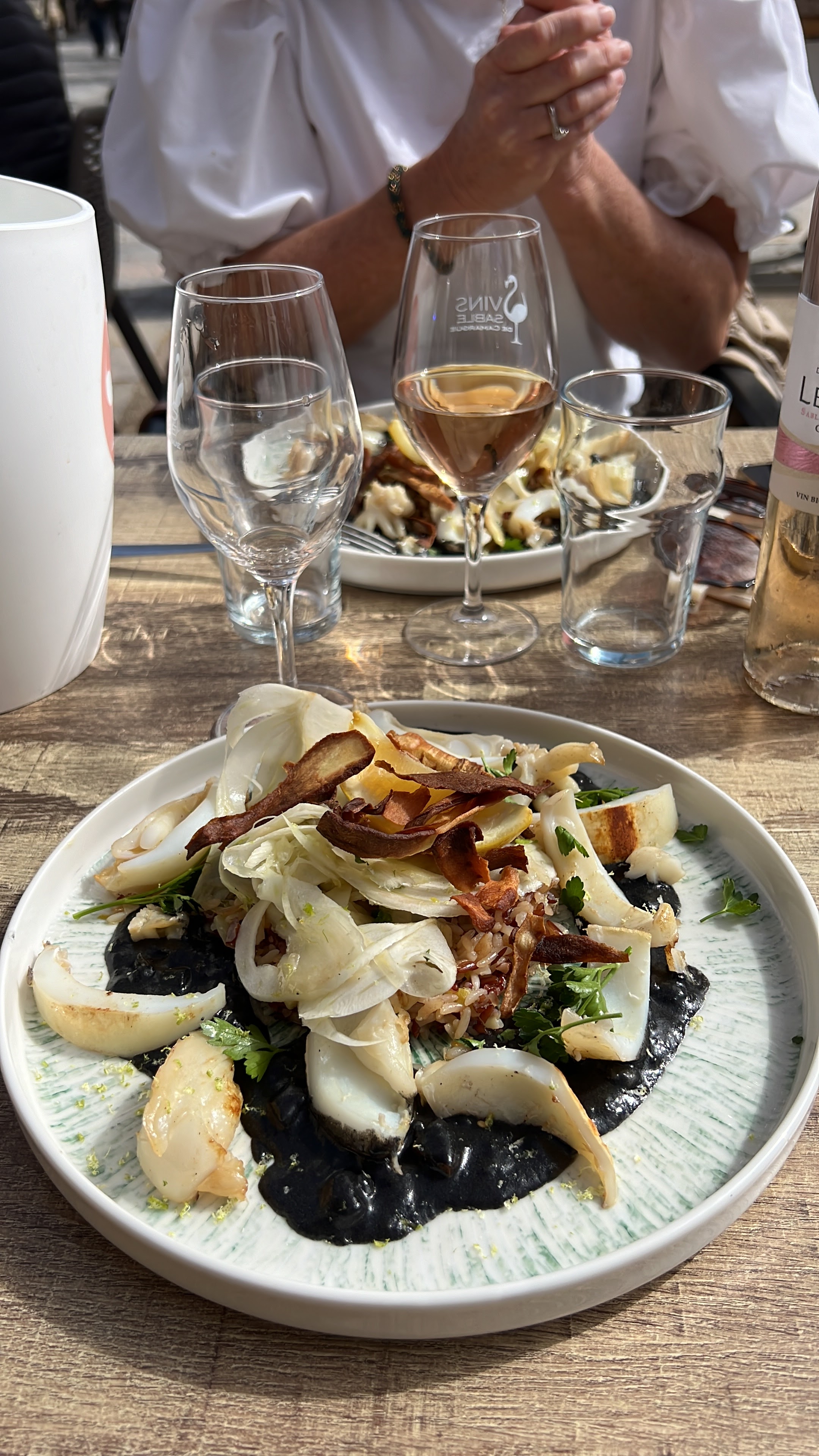 En plein coup de fouet du midi, pour 2 personnes, nous avons attendu très peu de temps avant d'être installés Personnel aimable et de bon conseil Le plat commandé n'était plus disponible Le patron est venu m'informer et me conseiller sur un autre plat Son arroz nero est une pure merveille Le tiramisu est fondant a souhait Mon mari a pris une gardiane excellente et un babapannetone qui ravi les papilles Un resto qui vaut qu'on s'y arrête Un patron très sympathique Merci pour votre accueil et votre cuisine