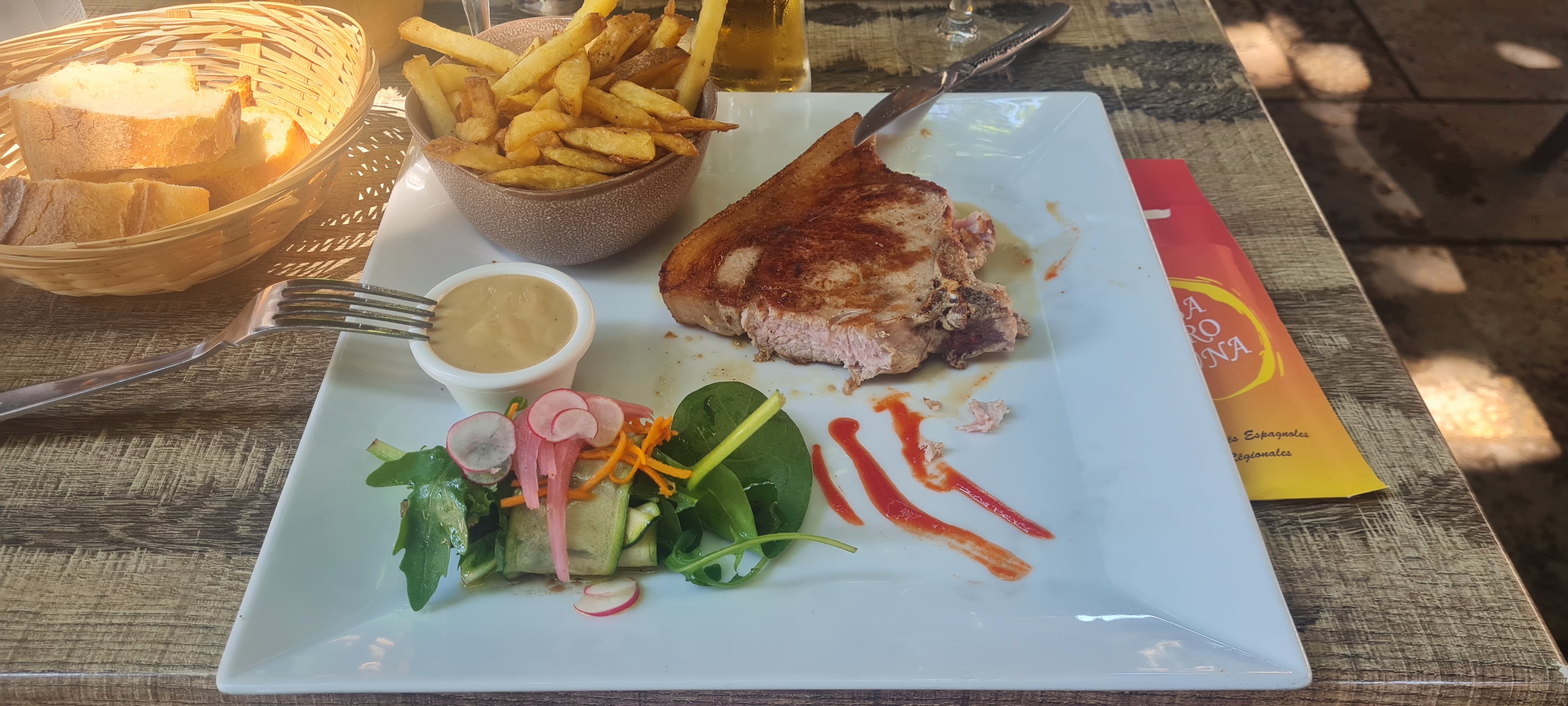 Le plus la serveuse super ! Surtout gardez la ainsi que la tarte tatin très bonne. Les moins le plat de Tapas infâme froid vu le prix c'est inadmissible. La daurade grillée pareil pas assez cuite. Un attrape touriste dommage !