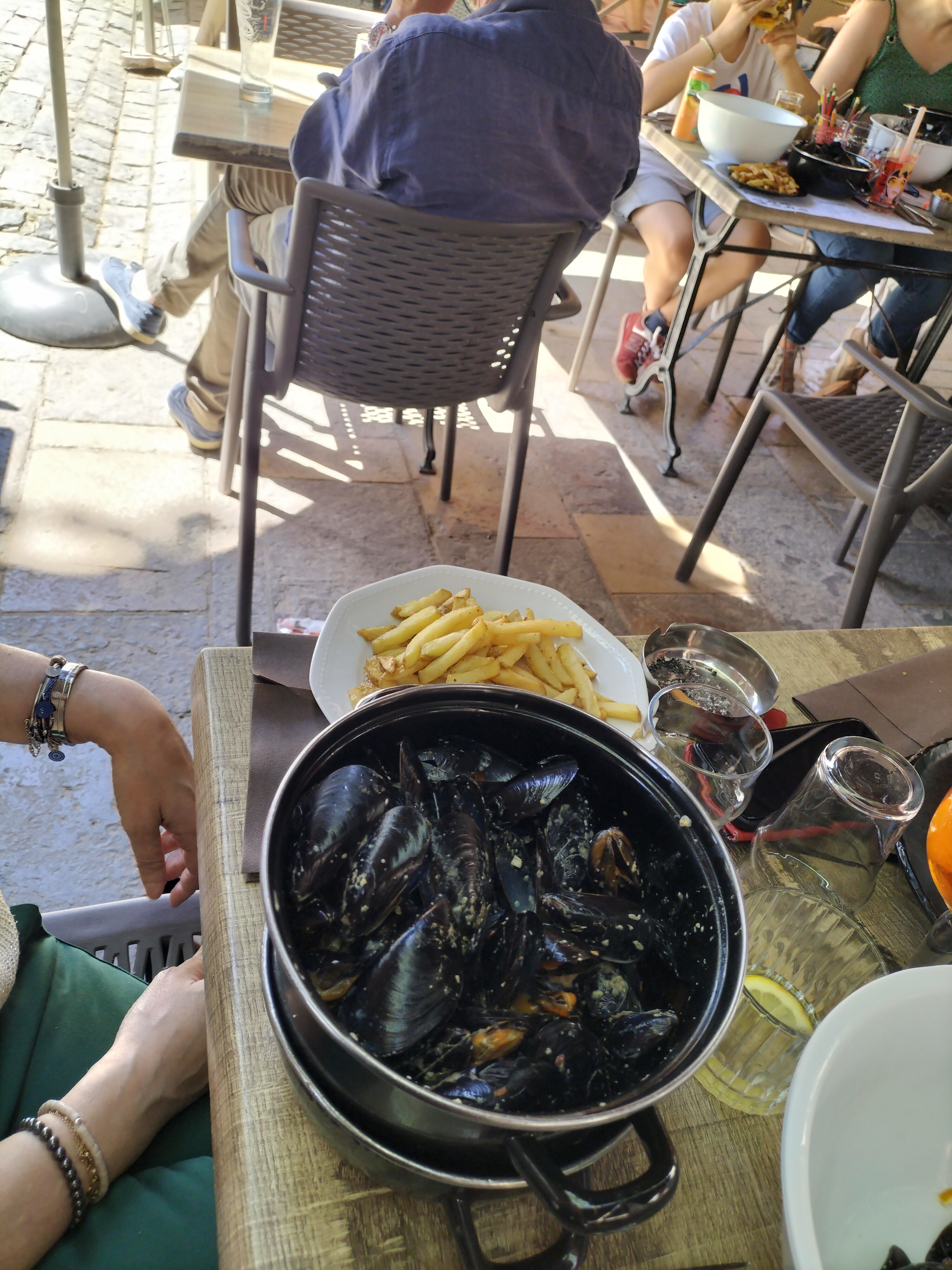 Terrasse très bien située et ensoleillée à midi fin mars. Service bien et rapide. Nous avons testé les moules à la sauce aigue-mortaise (crème + aïoli + safran). Certes le tarif ici est assez élevé pour des moules mais il faut reconnaître que la sauce est excellente et subtilement légèrement relevée :-))