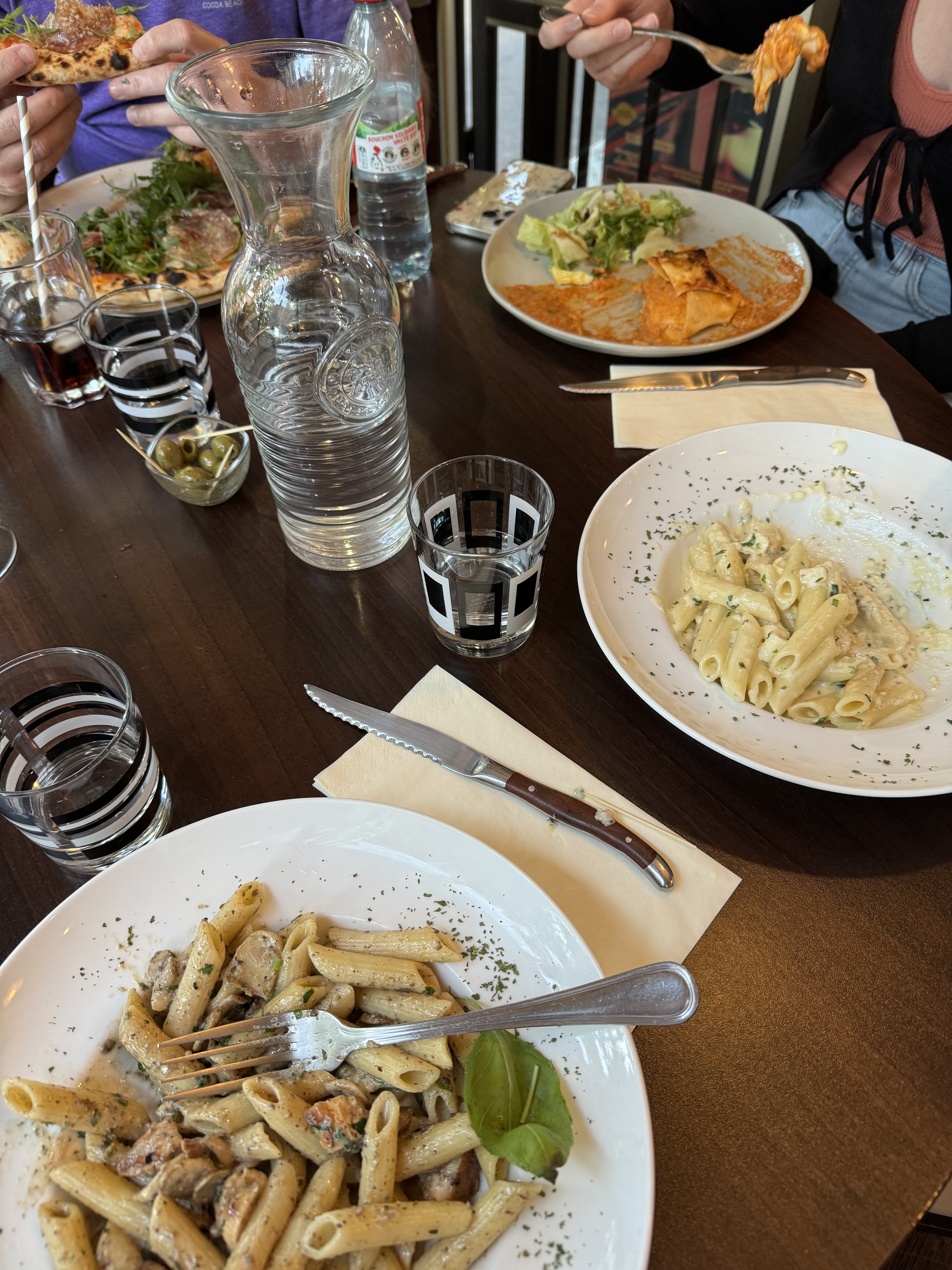 Super bon, on avais réservé pour 4 on a étais très bien placer dans le fond. Nourriture parfaite rien a dire vraiment. Les pâtes excellentes. Peut être faire baisser de 1€ chaque entre car sa reste quand même simple. Et ne pas obliger à prendre une bouteille d’eau payante on est pas en Italie