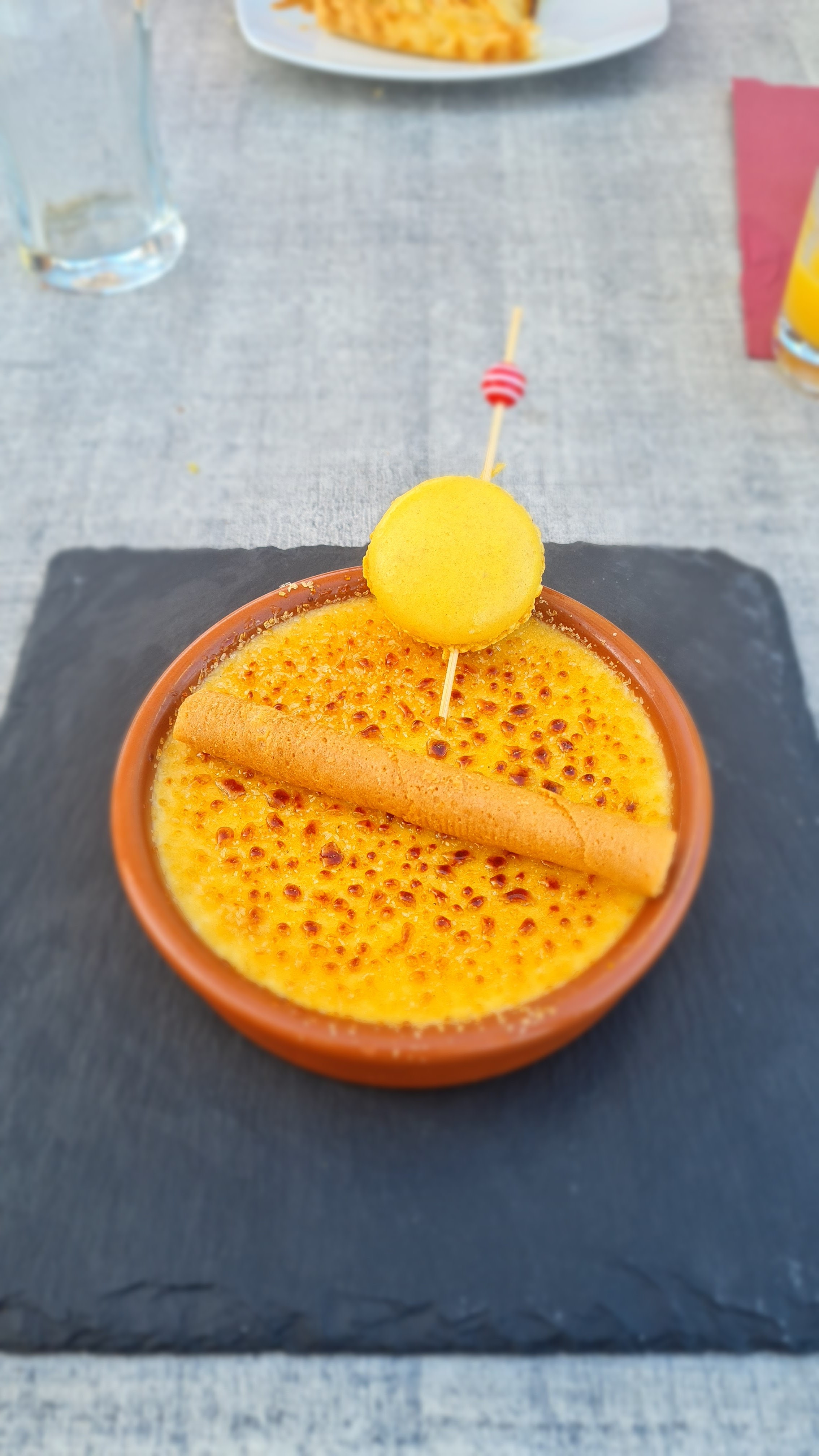 Carte très très limitée mais c'était excellent, une assiette de tataki de bœuf avec tartare de tomate/courage, frites salade et profiteroles en dessert, un délice !! Prix abordable. Très belle vue terrasse.