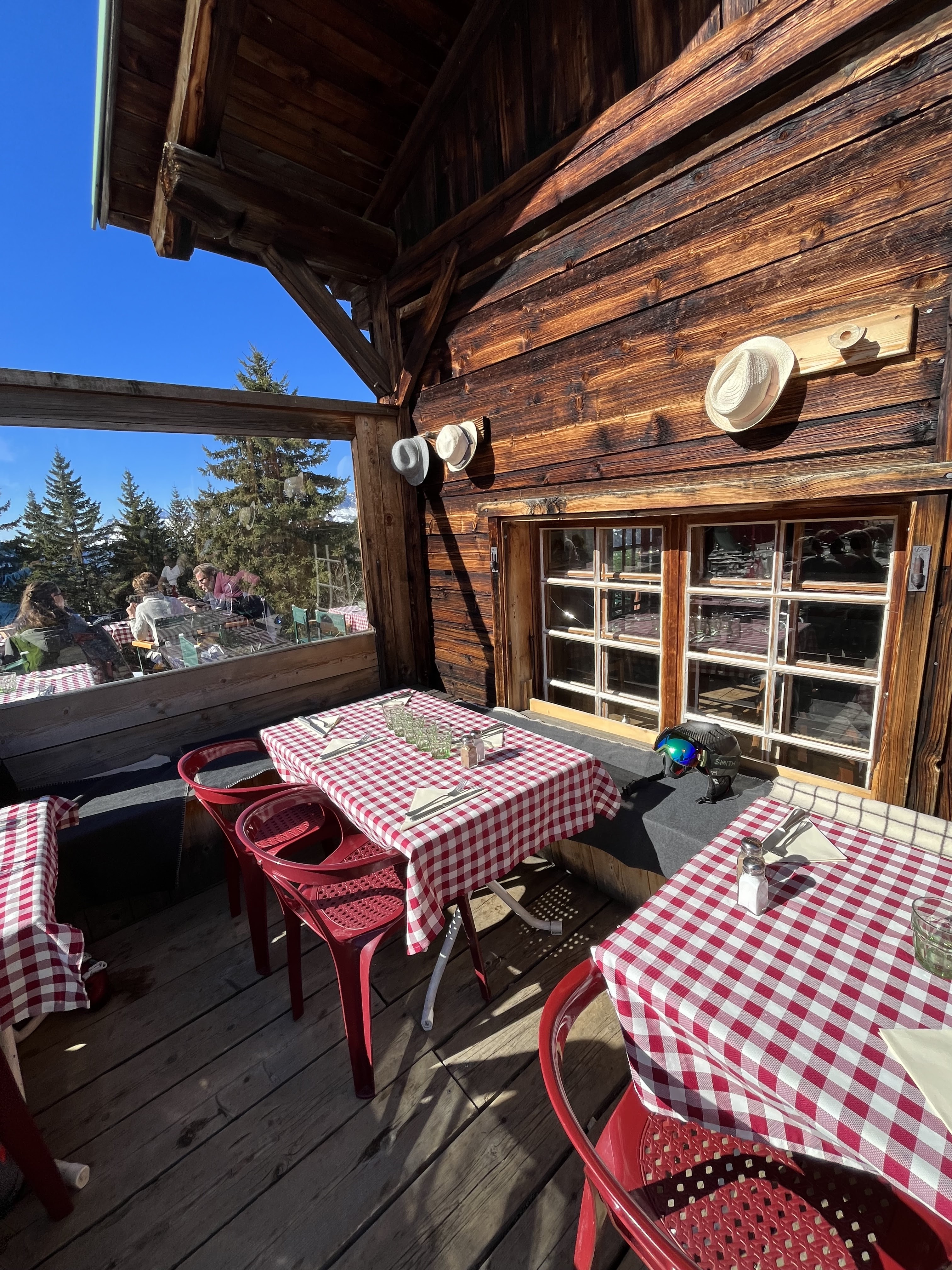 Restaurant de montagne + Un peu hors des sentiers battus et aux allures de petit chalet, ce lieu est une belle surprise en tous points. Il y a bien sûr une grande terrasse, et l'intérieur est à la fois élégant et authentiquement rustique. Le service est excellent, mais la nourriture était encore meilleure. Cuisine locale élevée à la perfection. Si cet endroit était à Londres, il y aurait une file d’attente à l’extérieur qui s’étendrait jusqu’au pâté de maisons. Devoir chausser les skis pour l'atteindre ajoute simplement à son glamour unique. La carte des vins est compacte et bien choisie. J'ai bu un verre de vin du moment rouge. C'était une excellente Mondeuse locale, tellement bonne que j'ai dû en prendre un autre verre. Un petit bijou dans la forêt. Et pas si loin de son vaisseau-mère, un peu plus bas sur la colline. Qui a trois étoiles Michelin ! Sauf si c'est une période très calme de la saison de ski, vous devrez réserver votre table.