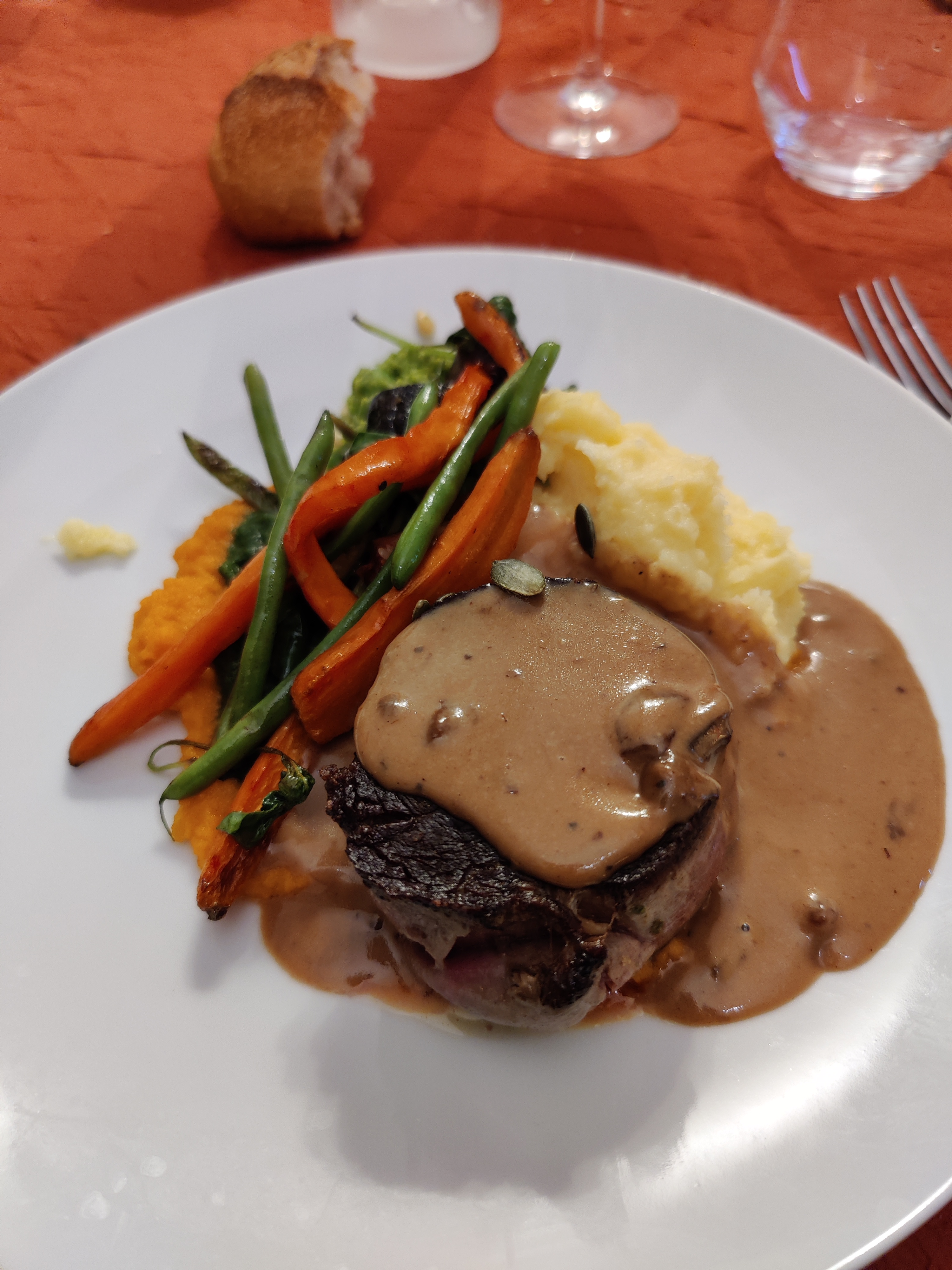 Toujours ce cadre superbe. Assiettes très joliment décorées. Viande de qualité et véritable portion. Bref toujours au TOP le Château 🏰.