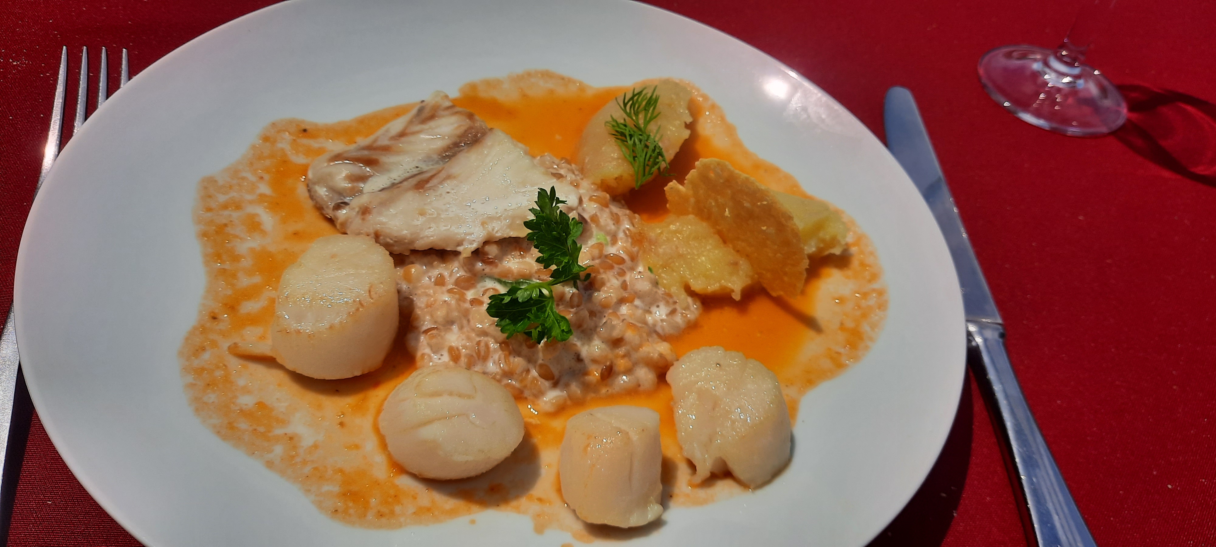 Excellent restaurant Cuisine raffinée Produits frais de qualité N hesitez pas si besoins de préciser à la réservation si vous êtes intolérant au gluten ou au lactose et vous aurez une cuisine adaptée. Et le cadre est bien sur magnifique je vous recommande vivement cet endroit.