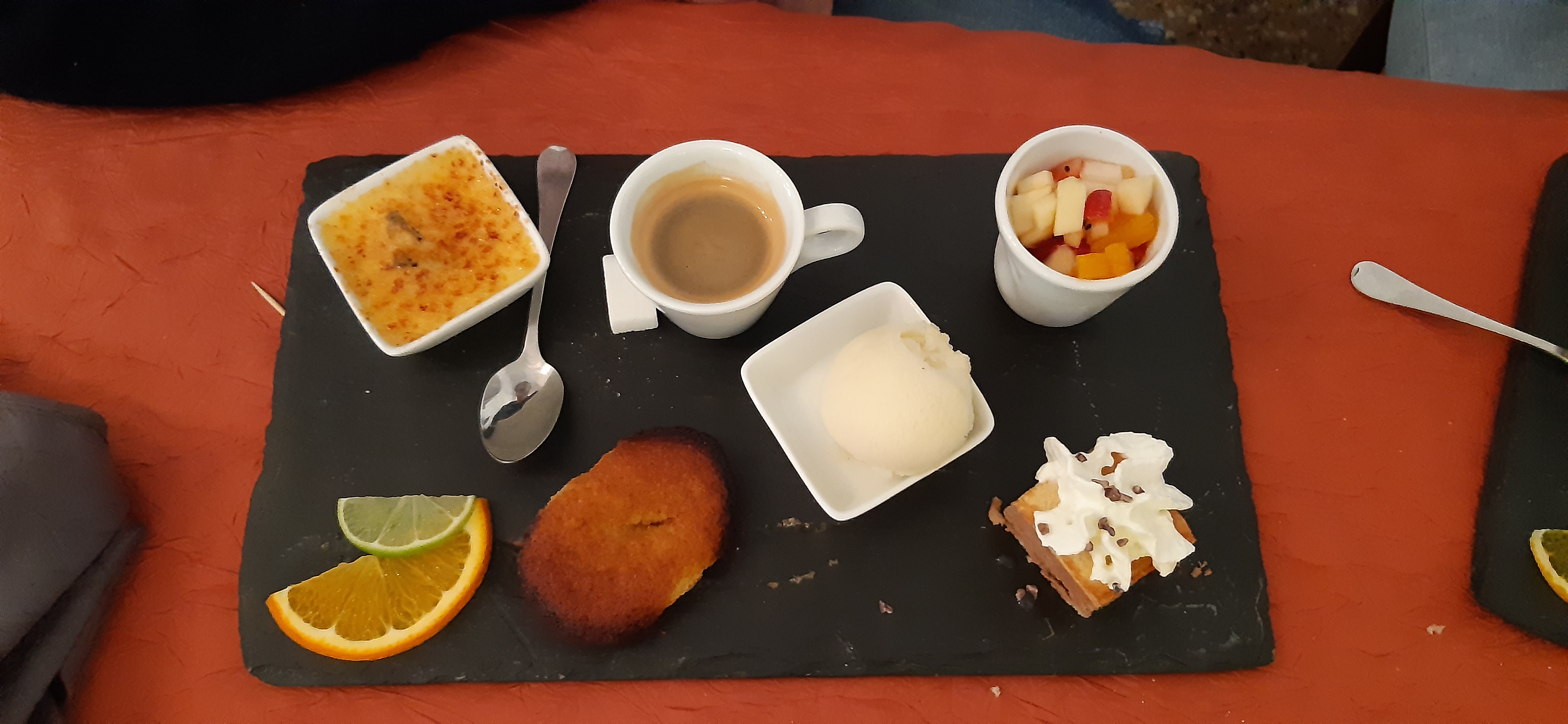 Bonne table, qualité des produits et service efficace. .. j'ai bien aimé la petite attention vis à vis de Toutoune, notre petite chienne. .. une gamelle d'eau fraiche ... j'adore 😊