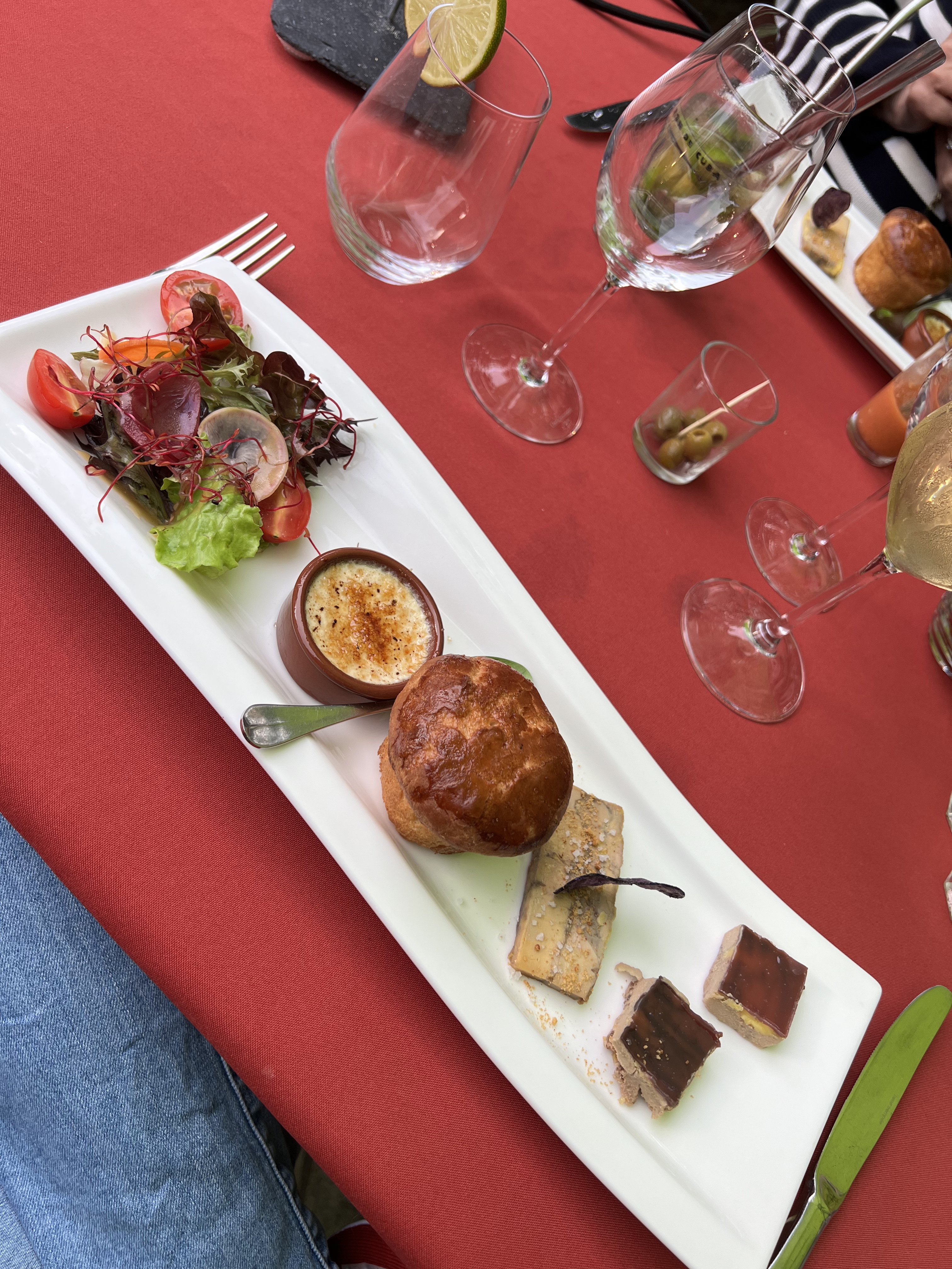 Cadre agréable. Un service à la hauteur du lieu et je ne parle que de Alan un serveur drôle, accueillant et a l'écoute. En ce qui concerne l'assiette: un tartare de truite insipide, le magret très bon, bonne cuisson par contre une sauce drôlement trop sucré. Ahhhhh j'oubliais le marbré de foie gras (une blague !!!!!) 2 carrés miséreux de la taille d'un glaçon une espèce crème brûlée soit disant foie gras également sans aucun intérêt. En résumé si vous aimez le sucre et pas de diabète.... Libre à vous. PS: le maître des lieux est hollandais et dieu seul sait au combien on aime leur gouda.
