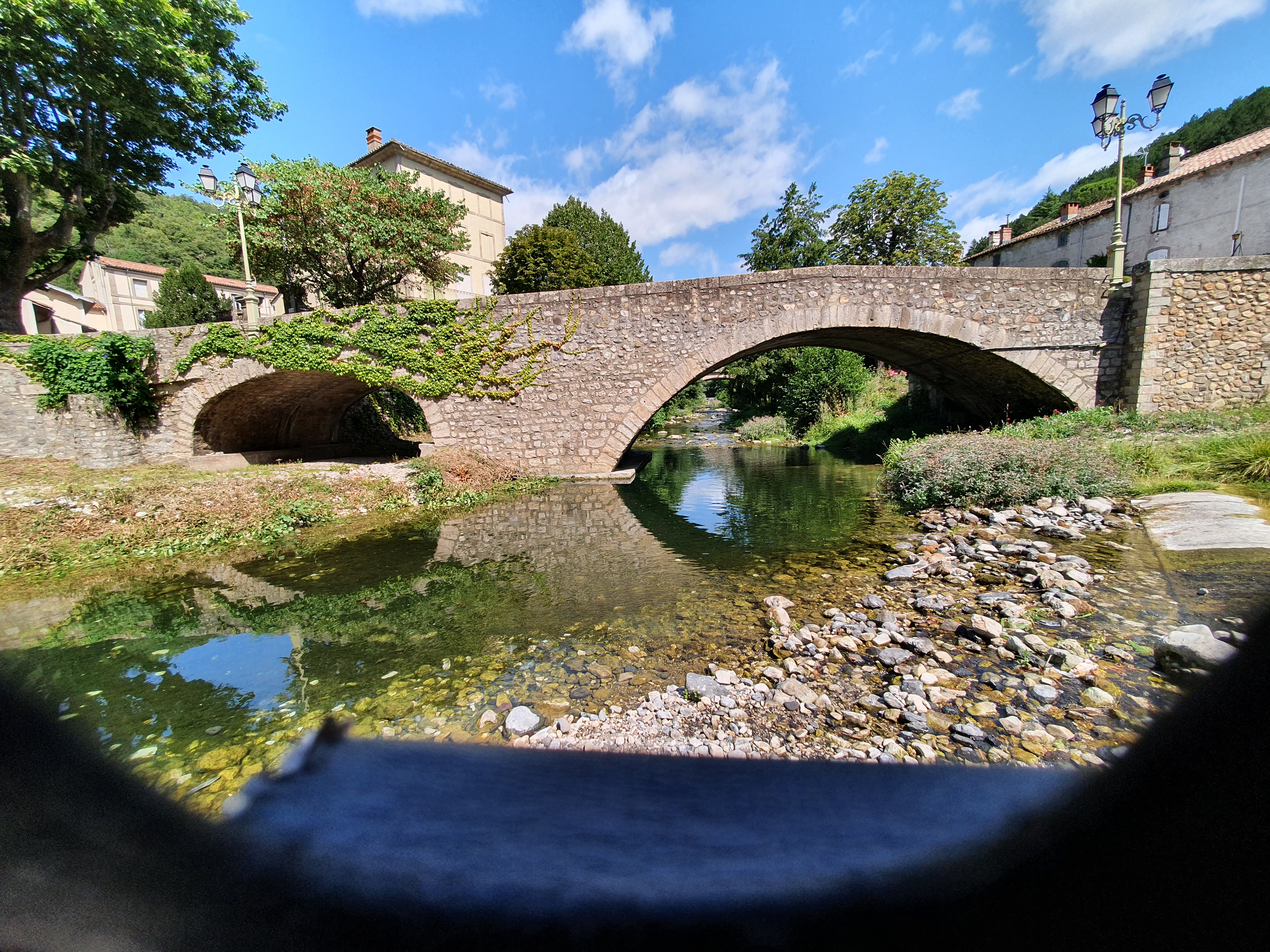 Un accueil très chaleureux du propriétaire, on mange en terrasse à l'abri du soleil au bord de la rivière. Une cuisine authentique, à la carte et un menu à 35euros environ. Toute l'équipe s'adapte aux clients. L'eau pétillante vient d'une société de lamalou qui a gagné un concours pour la qualité de son eau.