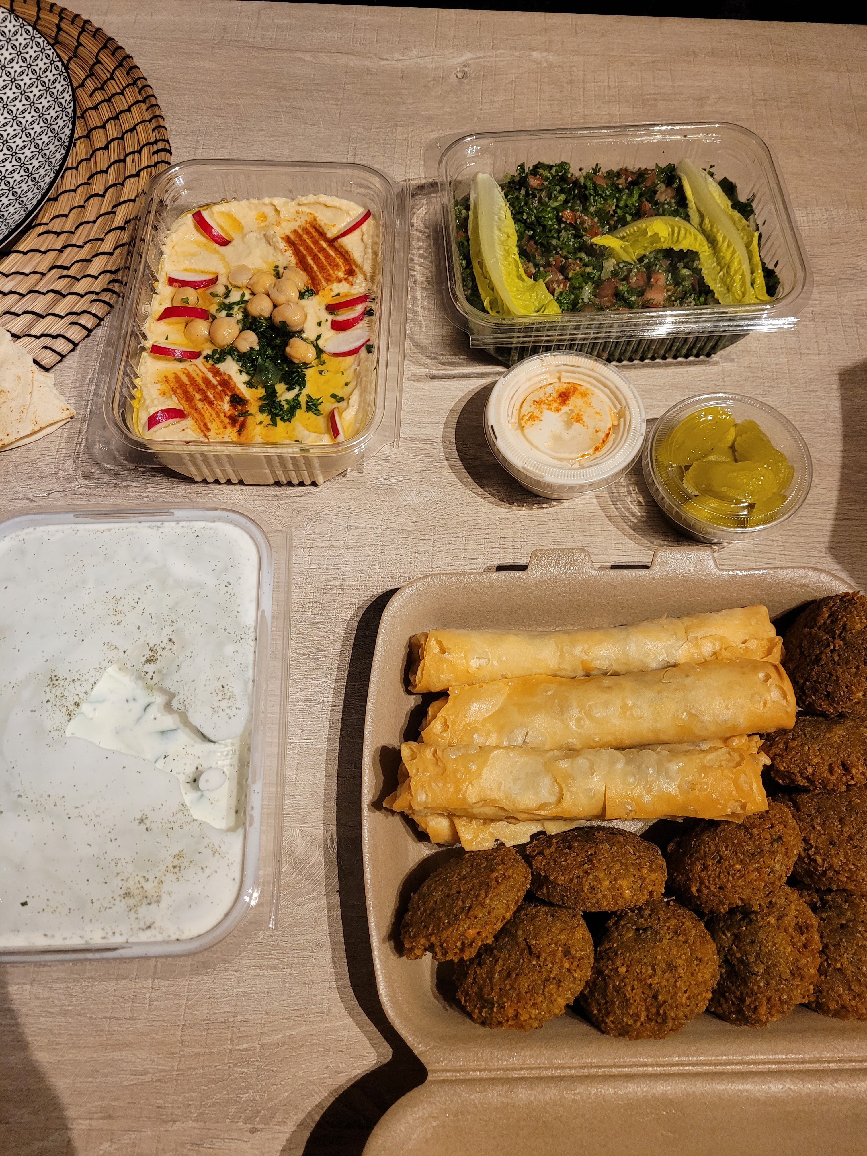 Personne charmante au téléphone pour nous indiquer le lieu où récupérer la commande et nous renseigner. Seulement de la vente à emporter. Petit SMS pour nous dire que notre commande était prête. Tout fut très bon. J'ai été ravie de goûter de la cuisine traditionnelle libanaise. On sent que c'est du fait maison. Pensez à réserver à l'avance pour leur permettre de vous préparer votre commande. Je vous les recommande.