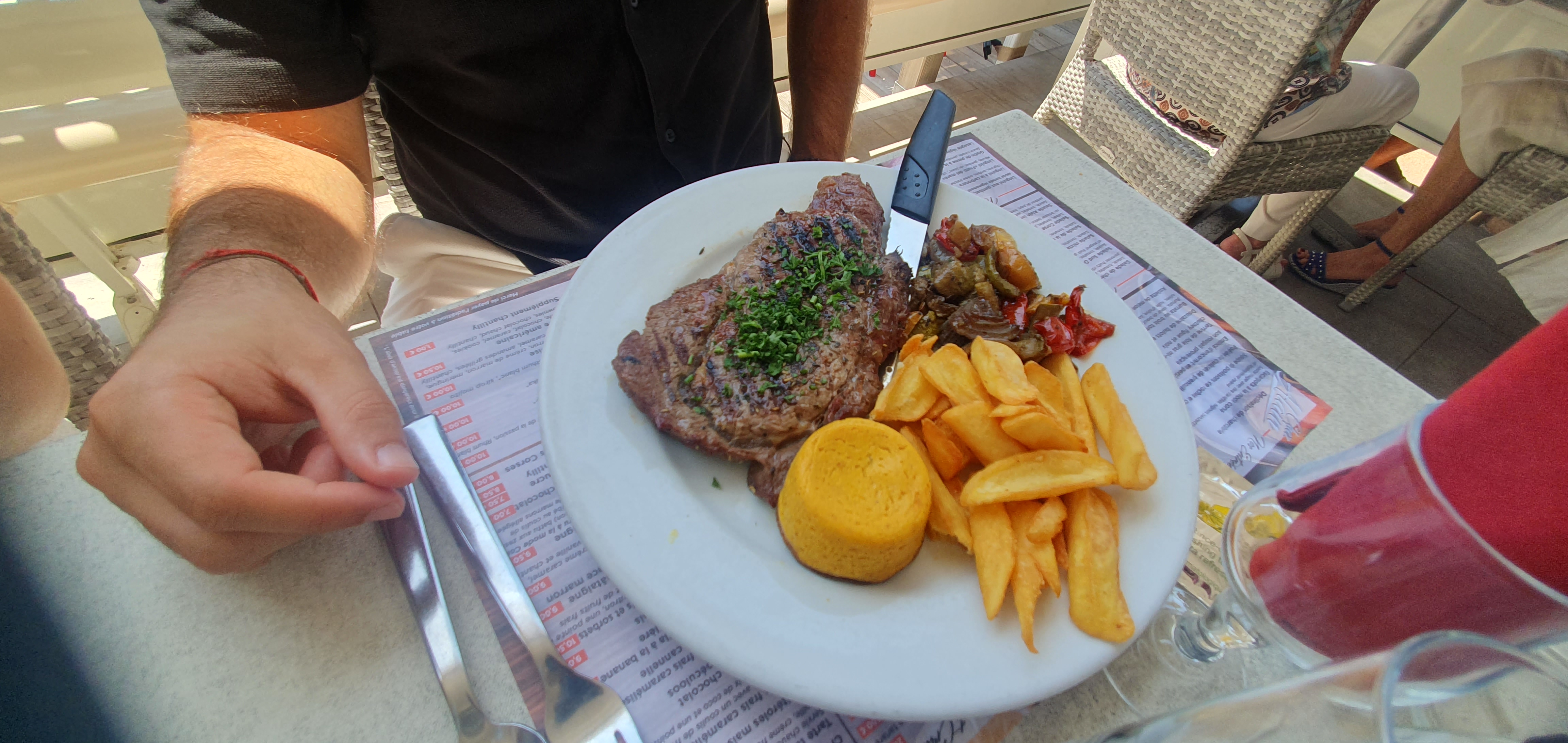 Bon et pas trop cher, avec une belle vue sur la mer, plein soleil, quand il fait un peu frais, c'est top!