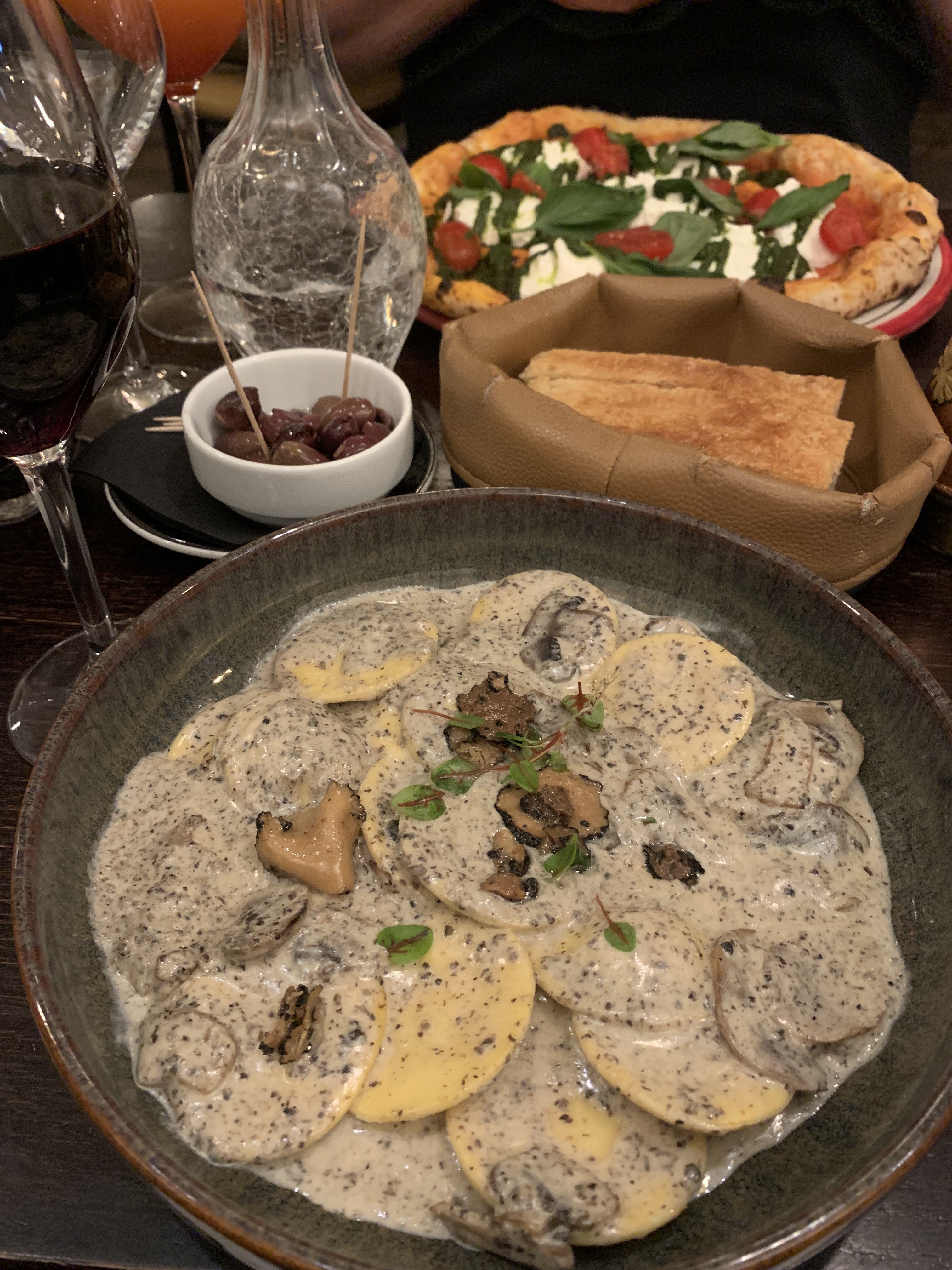 Cuisine italienne incroyable! Pizzas, pâtes, salades. Les raviolis à la truffe noire et sauce champignon sont entrés dans ma top liste !