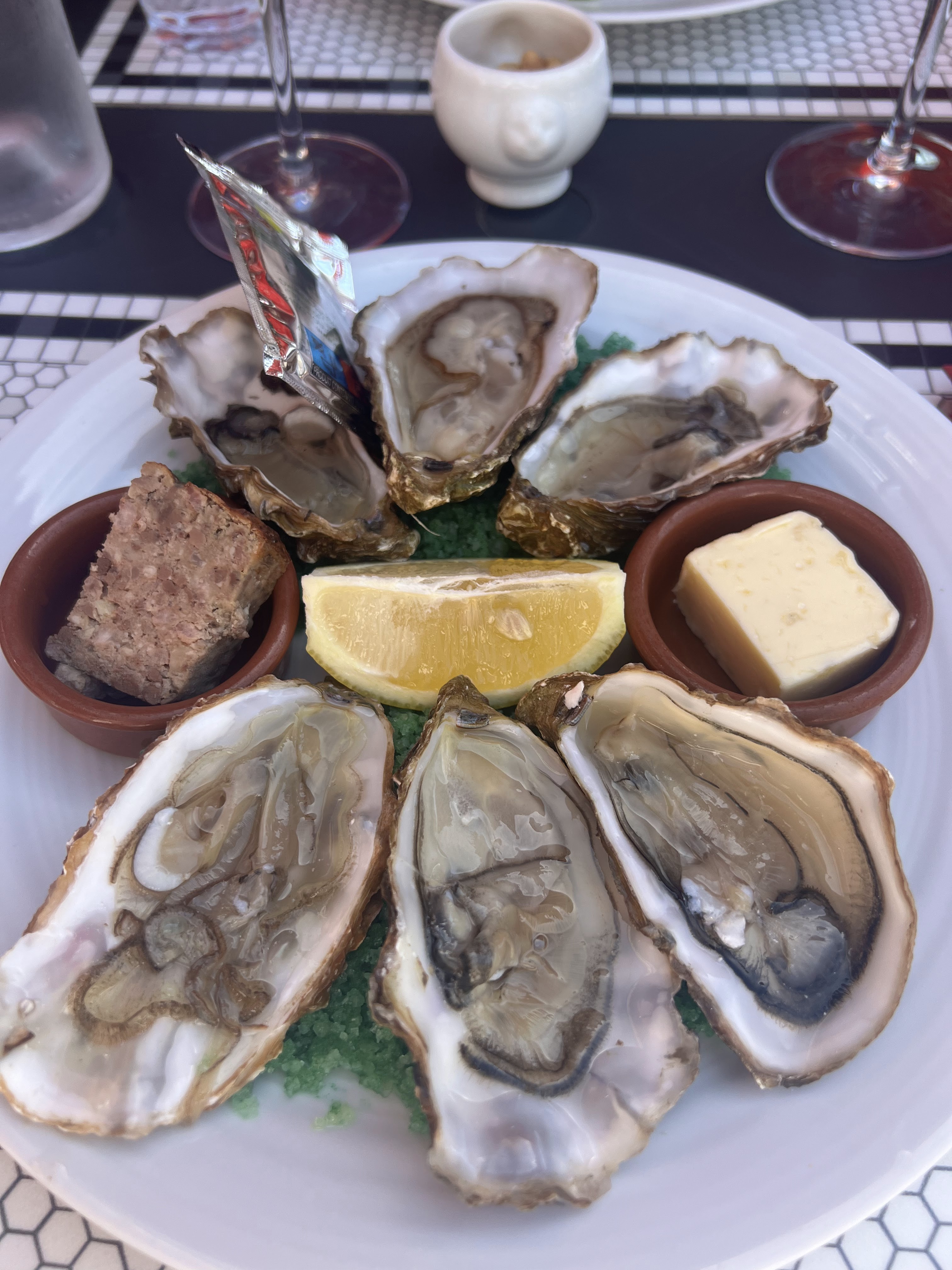 Papa et moi avons déjeuné dehors sous le soleil d'avril. Le personnel est adorable, patient et sympathique, ce qui me permet de pratiquer mon français approximatif ! Excellent choix de menu, cuisine locale fraîche. Les entrées étaient tarte aux chèvres et huîtres et nous avions tous les deux le magret en plat principal mais nous étions malheureusement trop pleins pour le dessert (même si j'ai réussi un XO !) J'y retournerai certainement