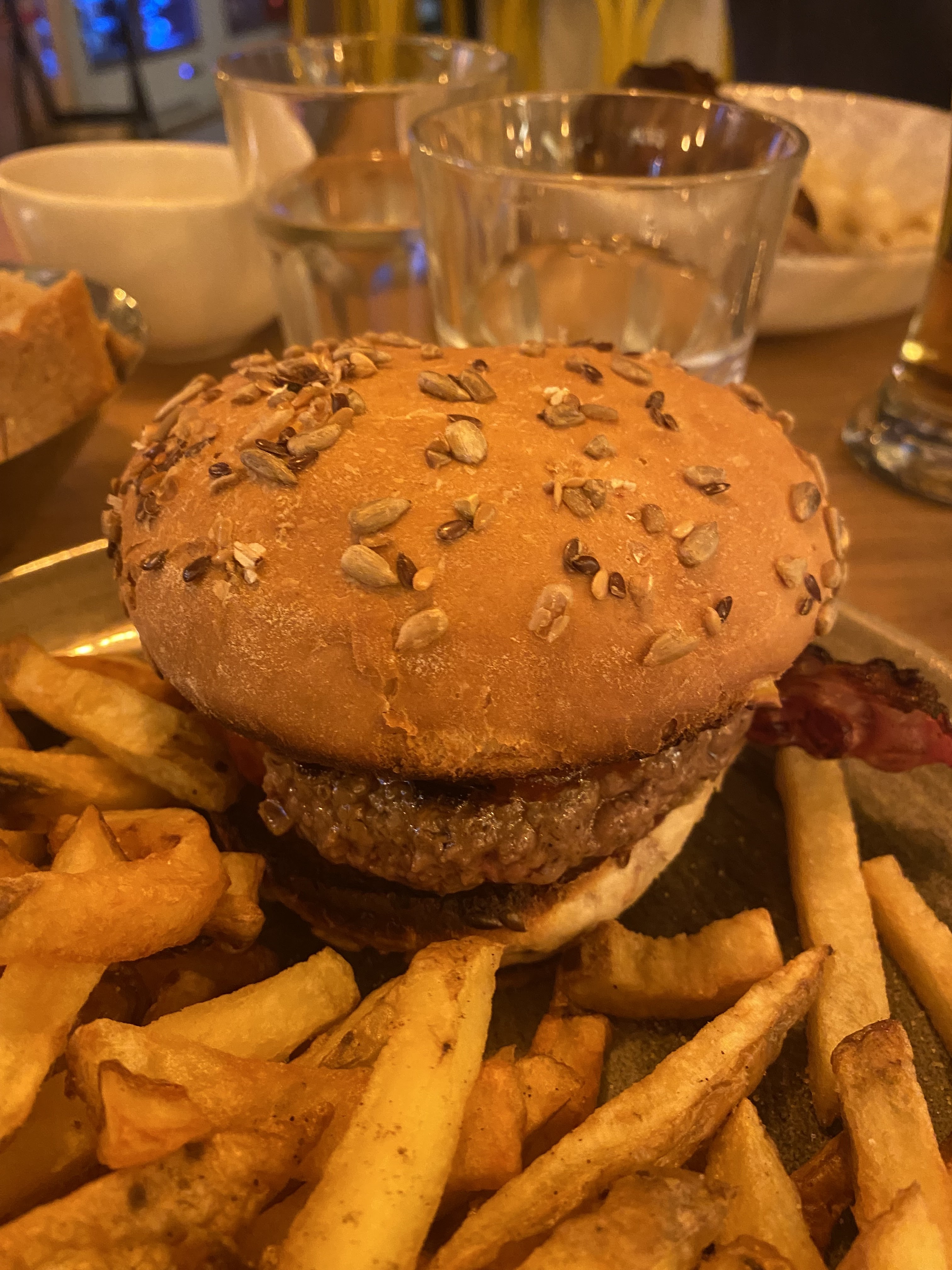 Beau cadre, service rapide. Déçu du rapport qualité prix. Comptez >10aine € pour l’entrée et >20aine pour les plats. Le cromesquis au veau en entrée était malheureusement essentiellement constitué de gras, et pas très croustillant.. Flageolets ou purée en accompagnement de la viande du plat a+20€, pas fou… ou Burger a 21,50€ un peu excessif non ? Les prix ne sont pas en coherence avec la simplicité des assiettes