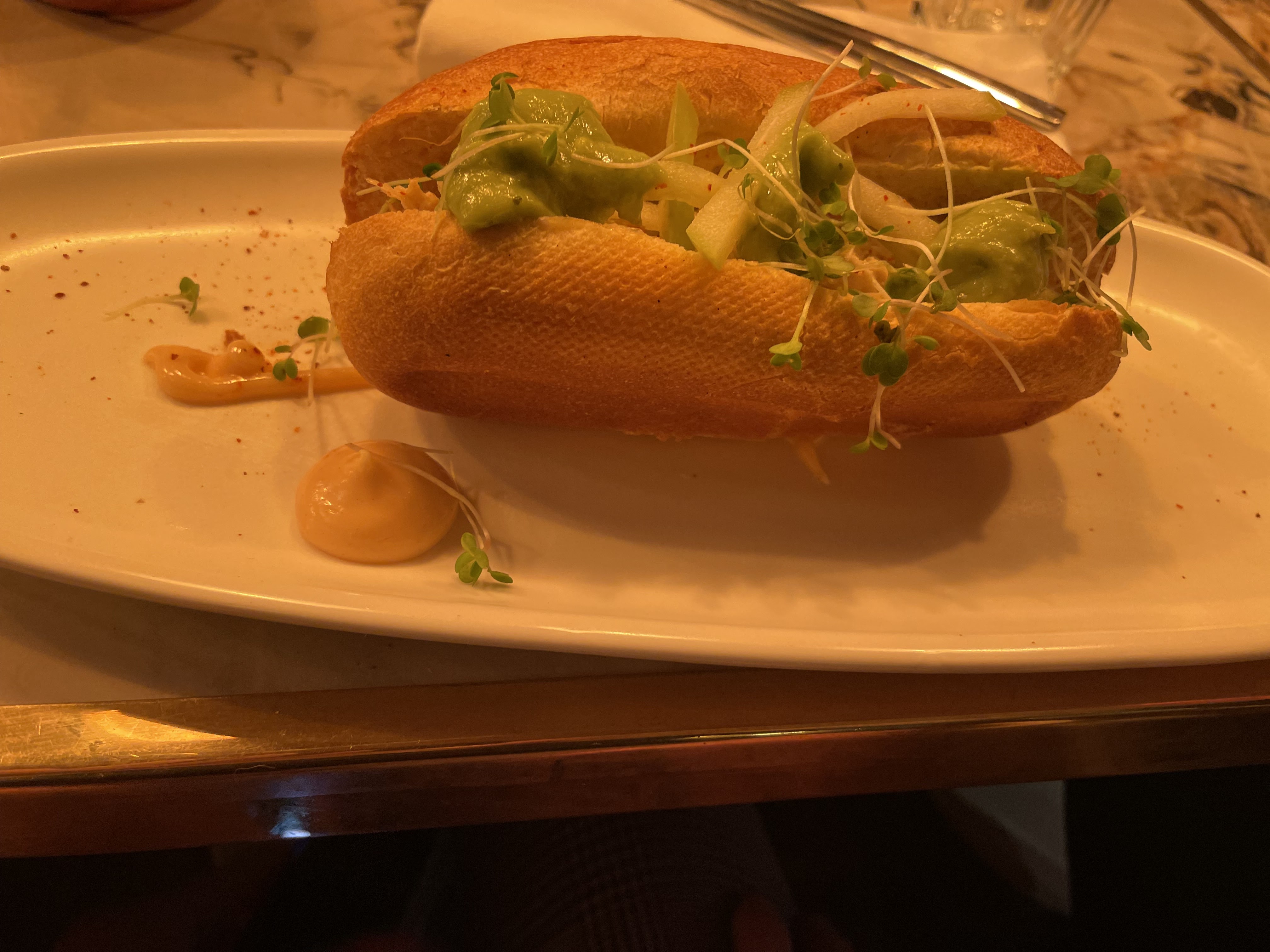 Très bonne ambiance. On se sent dans notre coin sans gêner les autres. J'ai beaucoup aimé mon plat de boeuf bien tendre. Mon entrée un peu moins ravioles de langoustines sauce beurre blanc. La sauce a pris le dessus je n'ai pas senti mes langoustines 😔 je pense qu'une bisque ou une réduction de la carcasse de langoustines conviendrait mieux. Ma note la moins belle est pour le service. Un des serveurs faisait tout trop rapidement. Il m'a bousculé une première fois. La seconde fois il a fait tomber une fourchette sur moi j'ai une tâche de sauce sur mon vêtements. Et en plus il n'était pas des plus agréables. Mais les autres étaient très sympathiques . Et j'ai bien aimé que les hommes soient en chemises nœuds papillons très classe.