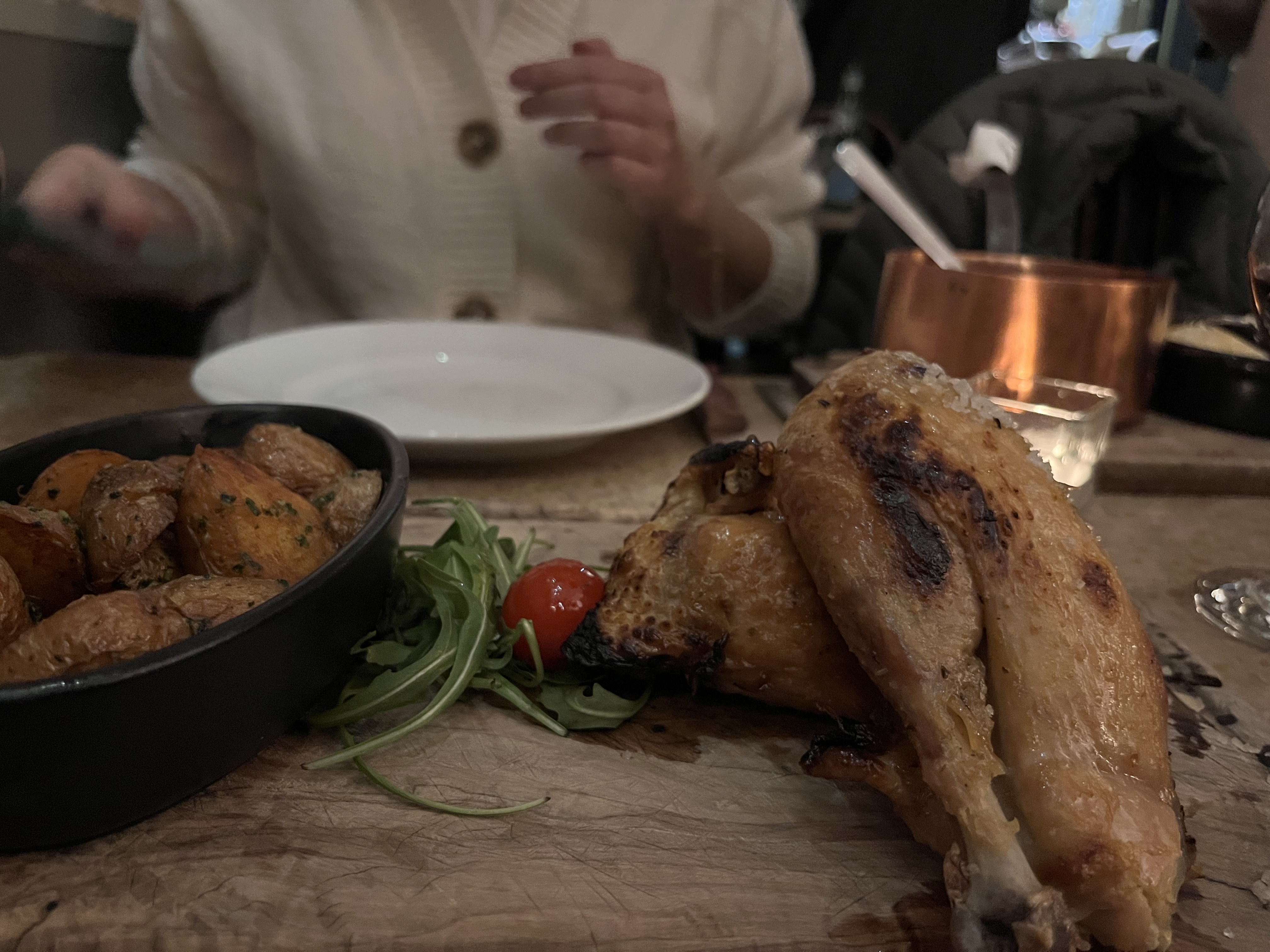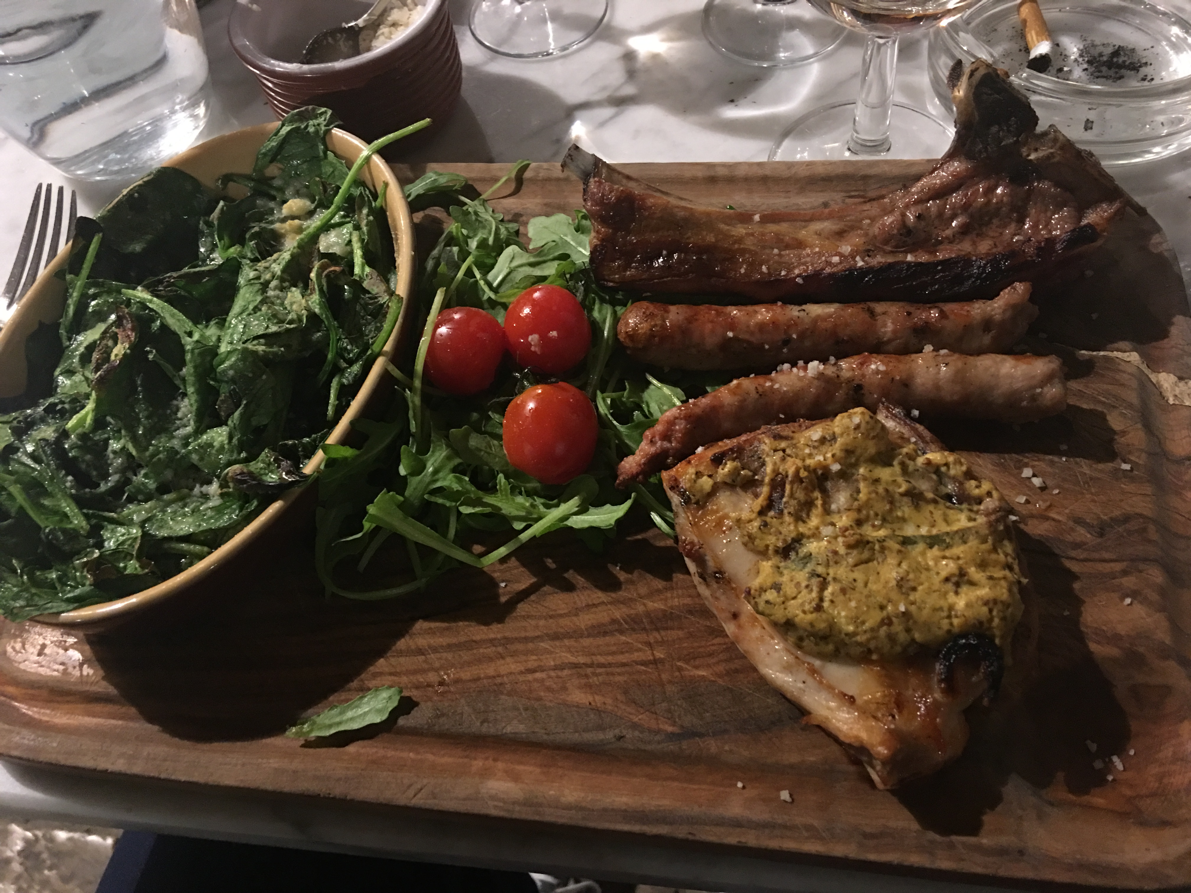 Déjeuner fantastique : entrée copieuse et viande succulente au feu de bois. Très belle adresse.