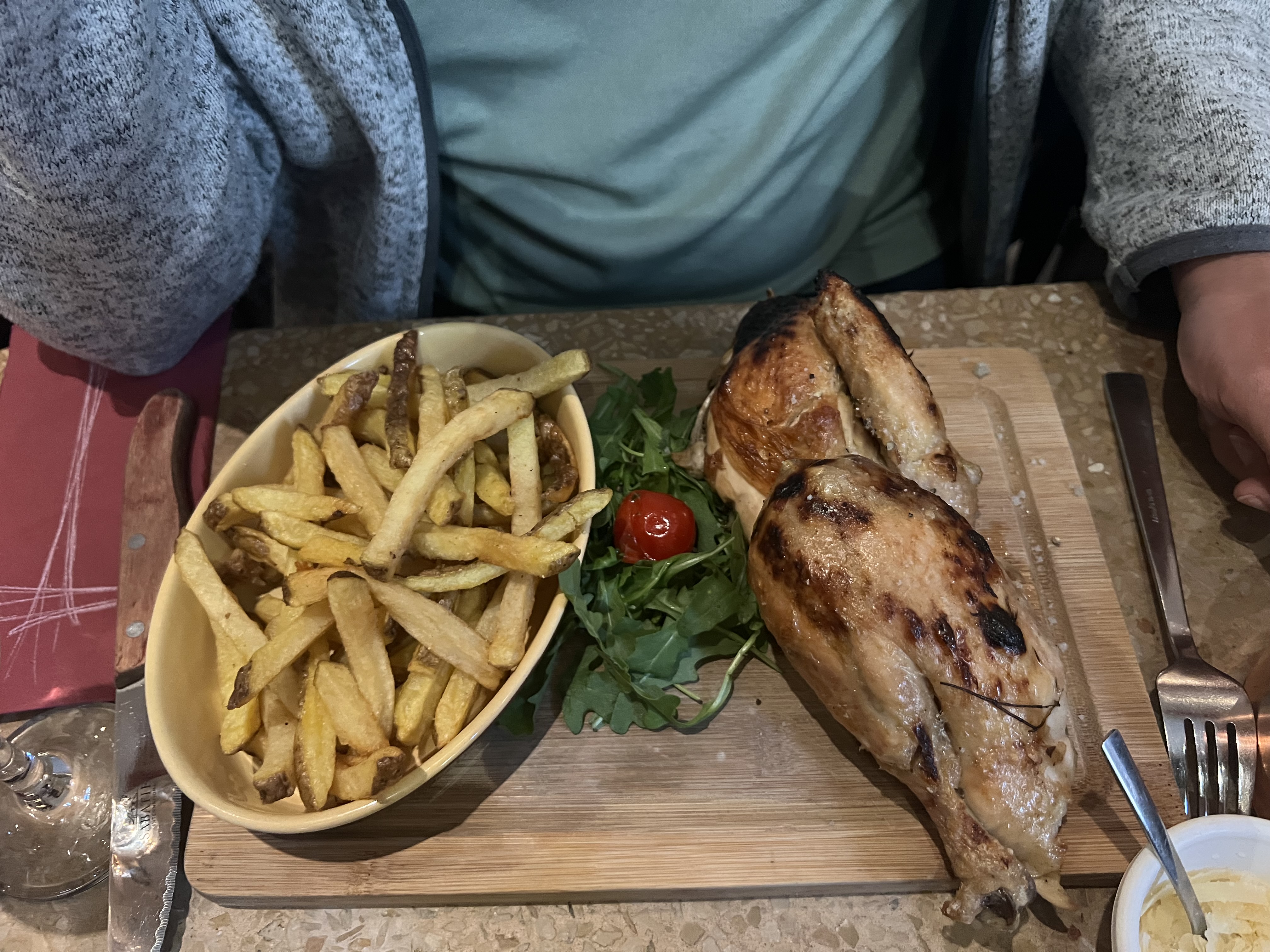 Un incontournable pour nous, malheureusement pas de réservation mais c’est un restaurant qui se mérite et qui vaut l’attente ! Premier soir pizzas et desserts : pâte pizza super bonne, garniture généreuse. Les tartes sont une tuerie ! Pâte maison au top. Deuxième soir poulet rôti pour Monsieur : une belle pièce (1/2 poulet) et entrecôte de bœuf généreuse pour moi. Sauce roquefort maison en supplément, nous n’avions plus de place pour les tartes à notre grand désespoir 🙃! Prix plus que raisonnable au vu de la qualite et de la quantité. Service réactif et adorable !
