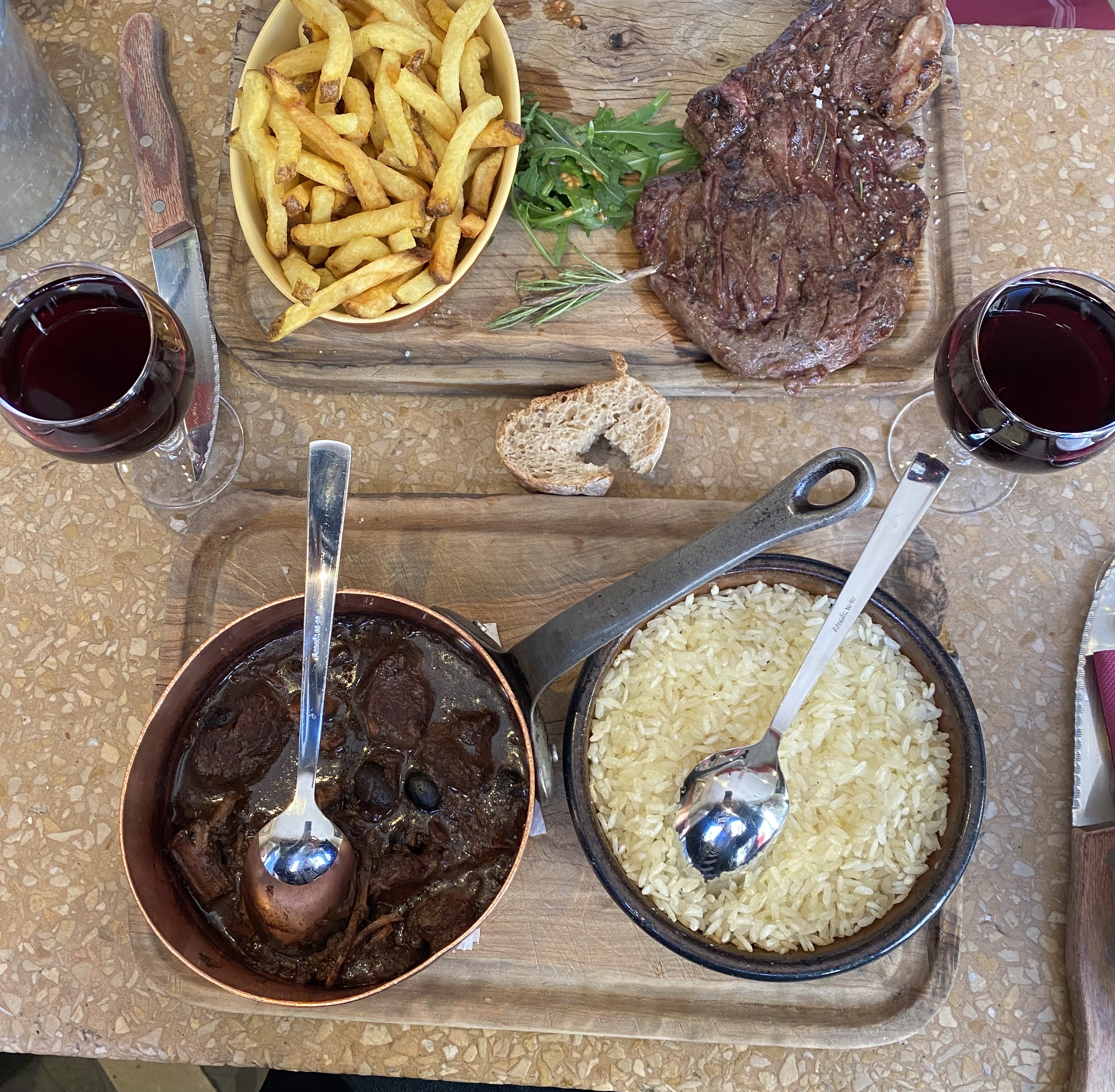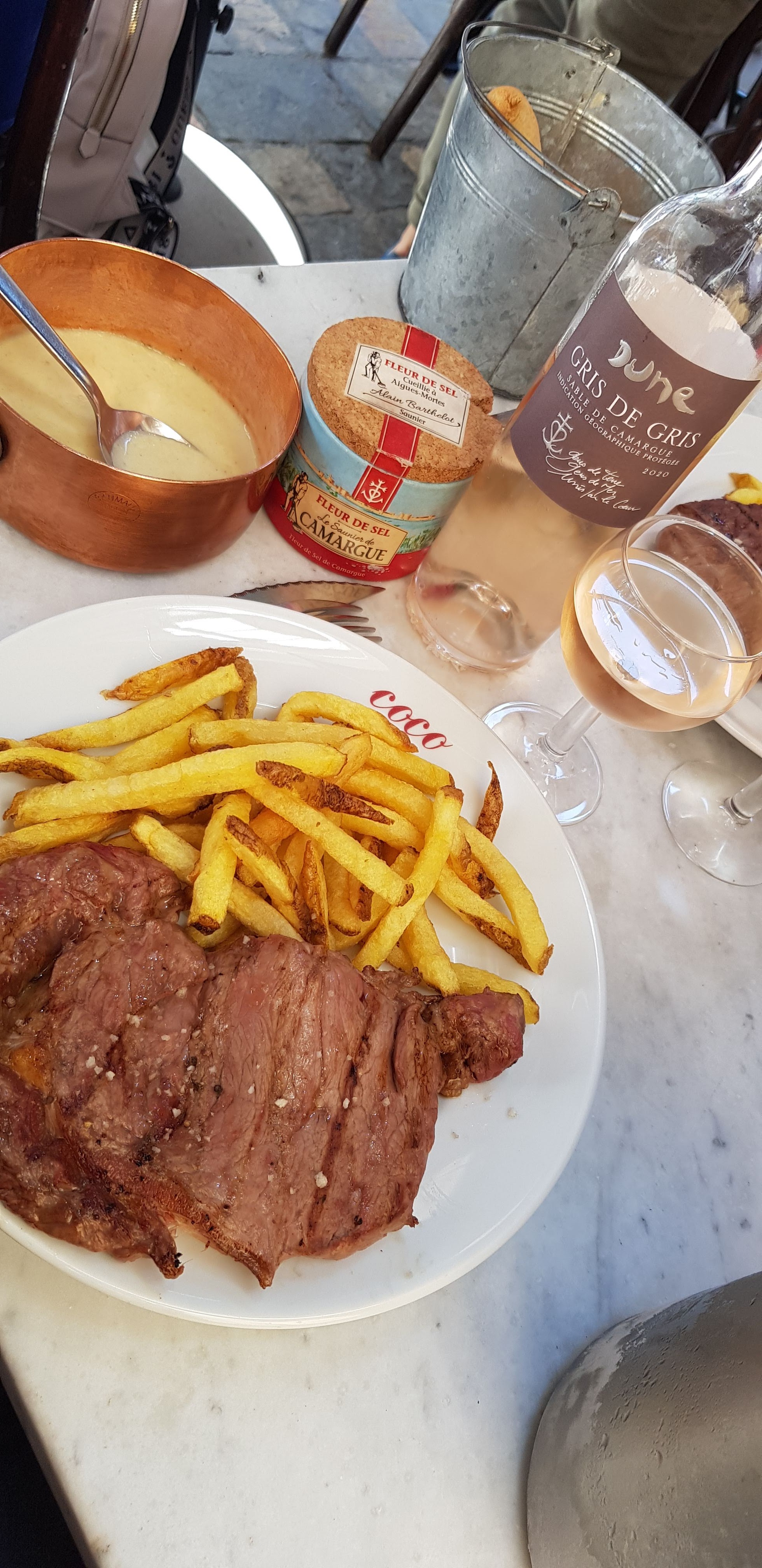 Tout est bon chez coco, le pavé de toro,les frites,la salade ,le pain ,le rosé… et ils sont sympa .