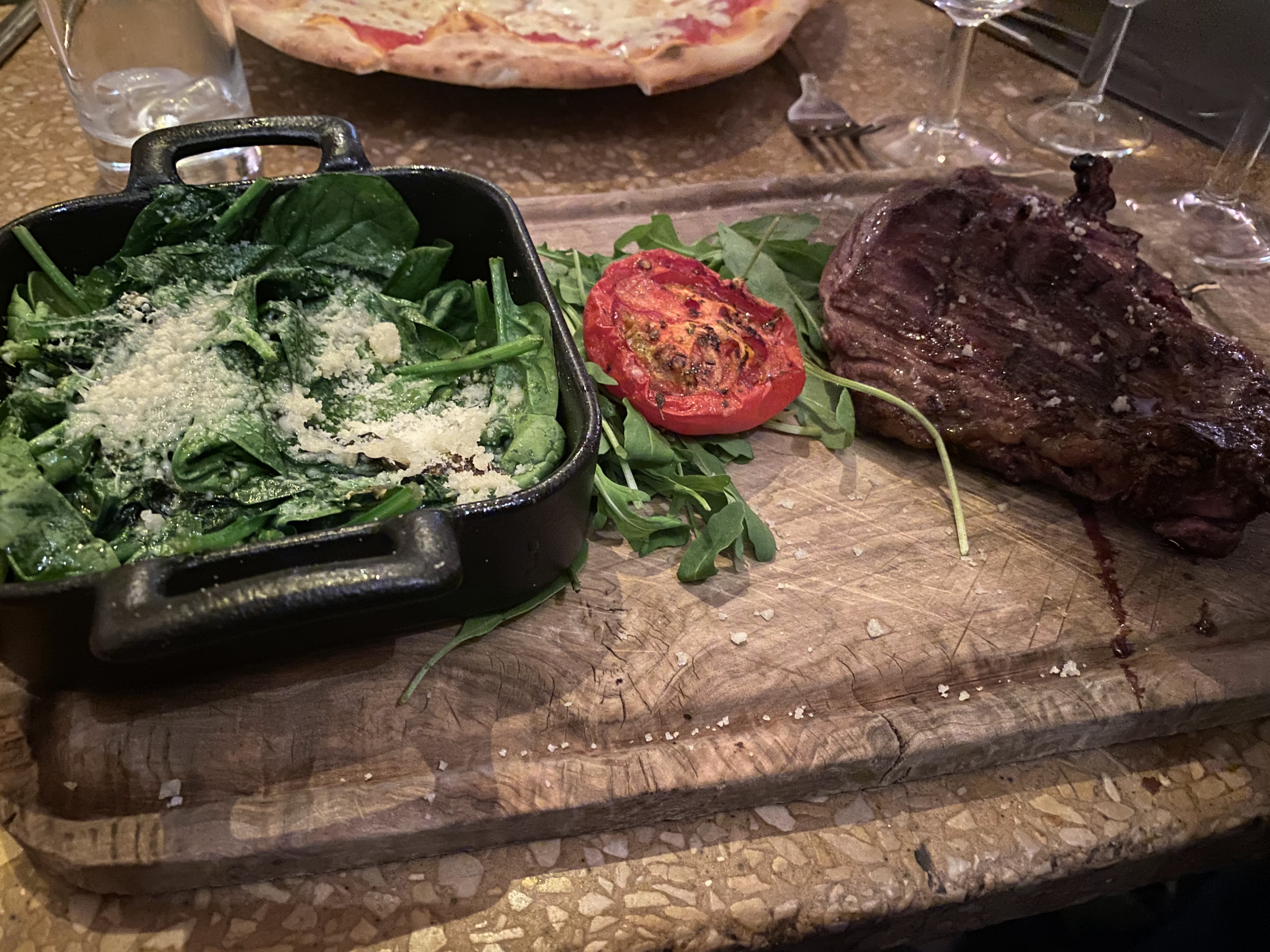 Serveurs super sympas et service de restauration très rapide. Argent pour le rapport qualité/prix ok. La qualité de la nourriture, à mon avis, pourrait être améliorée. Pizza avec beaucoup trop de fromage et légèrement insuffisamment cuite. Le filet de Toro était très bon, mais les épinards étaient « sableux » (je suppose qu’ils n’étaient pas lavés correctement). J'aurais mentionné que si on leur avait demandé comment était la nourriture? mais on ne l'a pas demandé du tout. Spaghetti Bolo était très bon et une portion énorme.