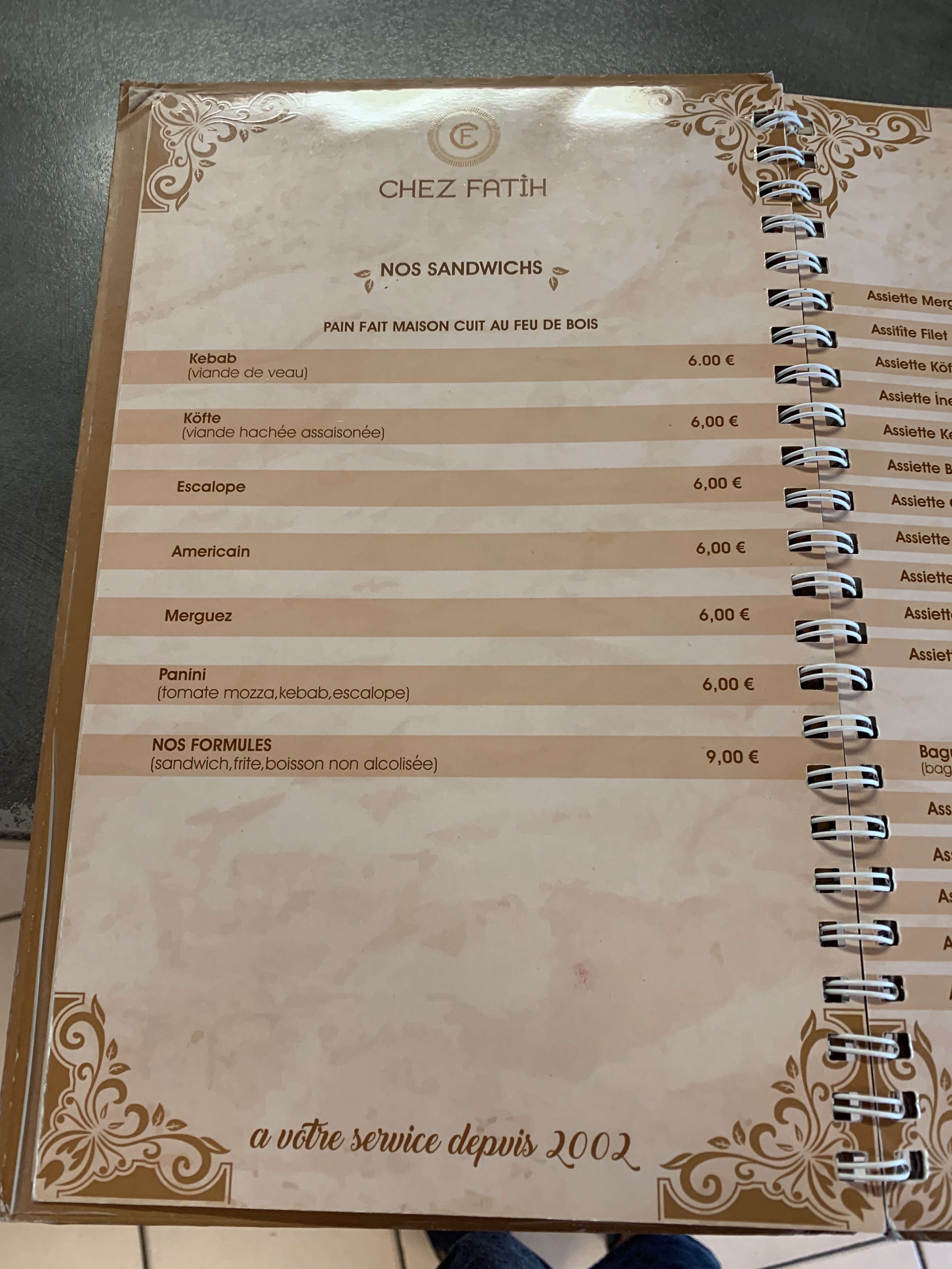 Meilleur kebab de la ville rien à dire, je mange là-bas depuis que j'ai 14ans 28ans aujourd'hui. Chez Fatih la base