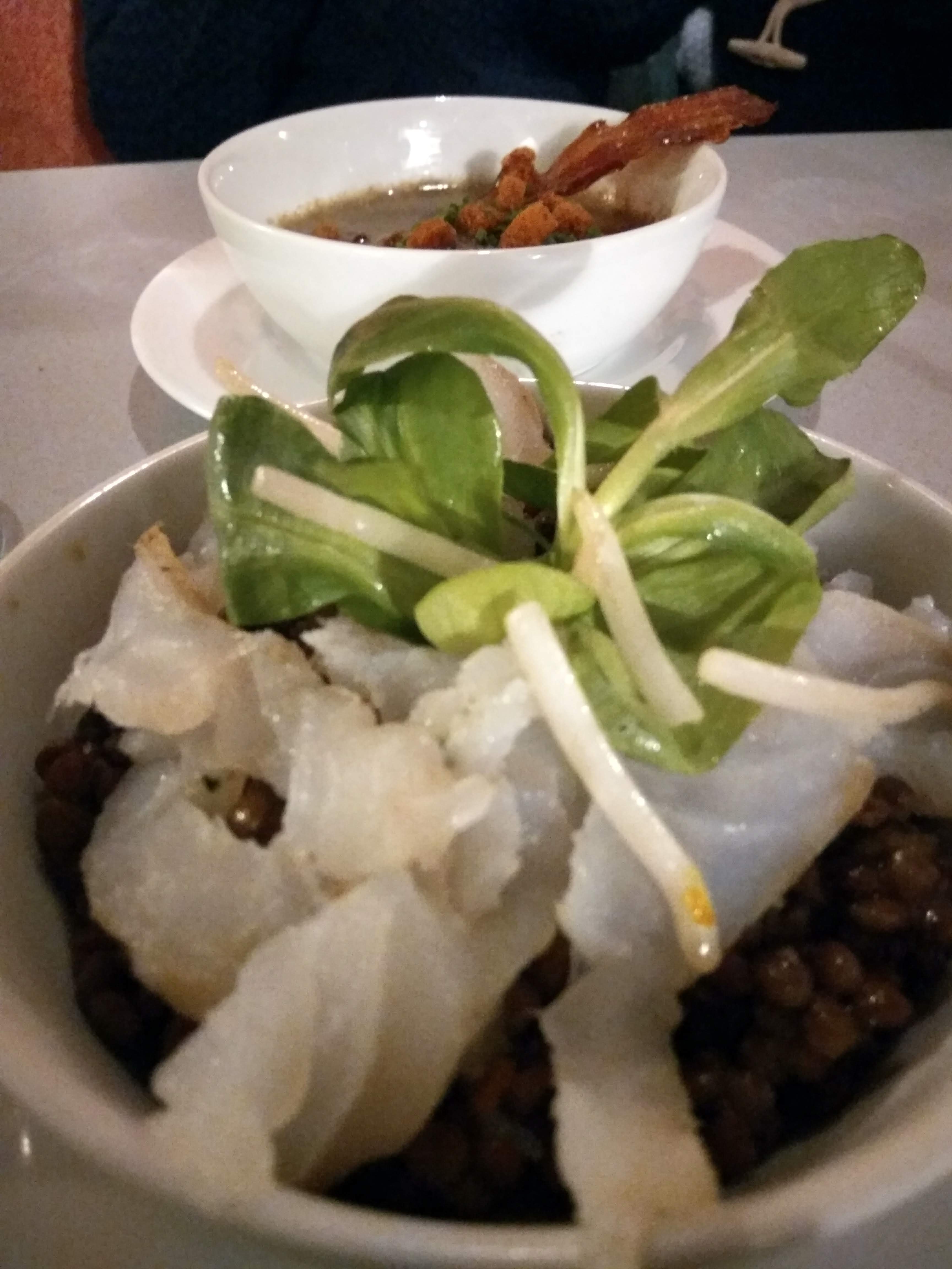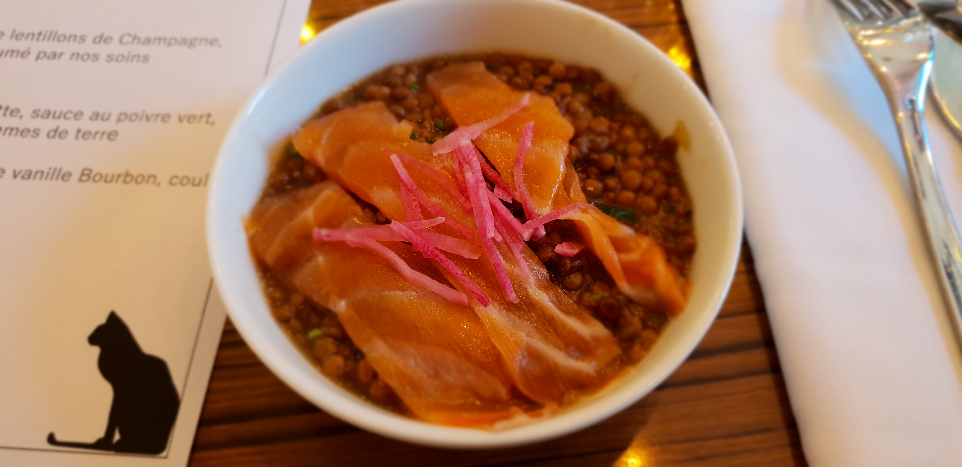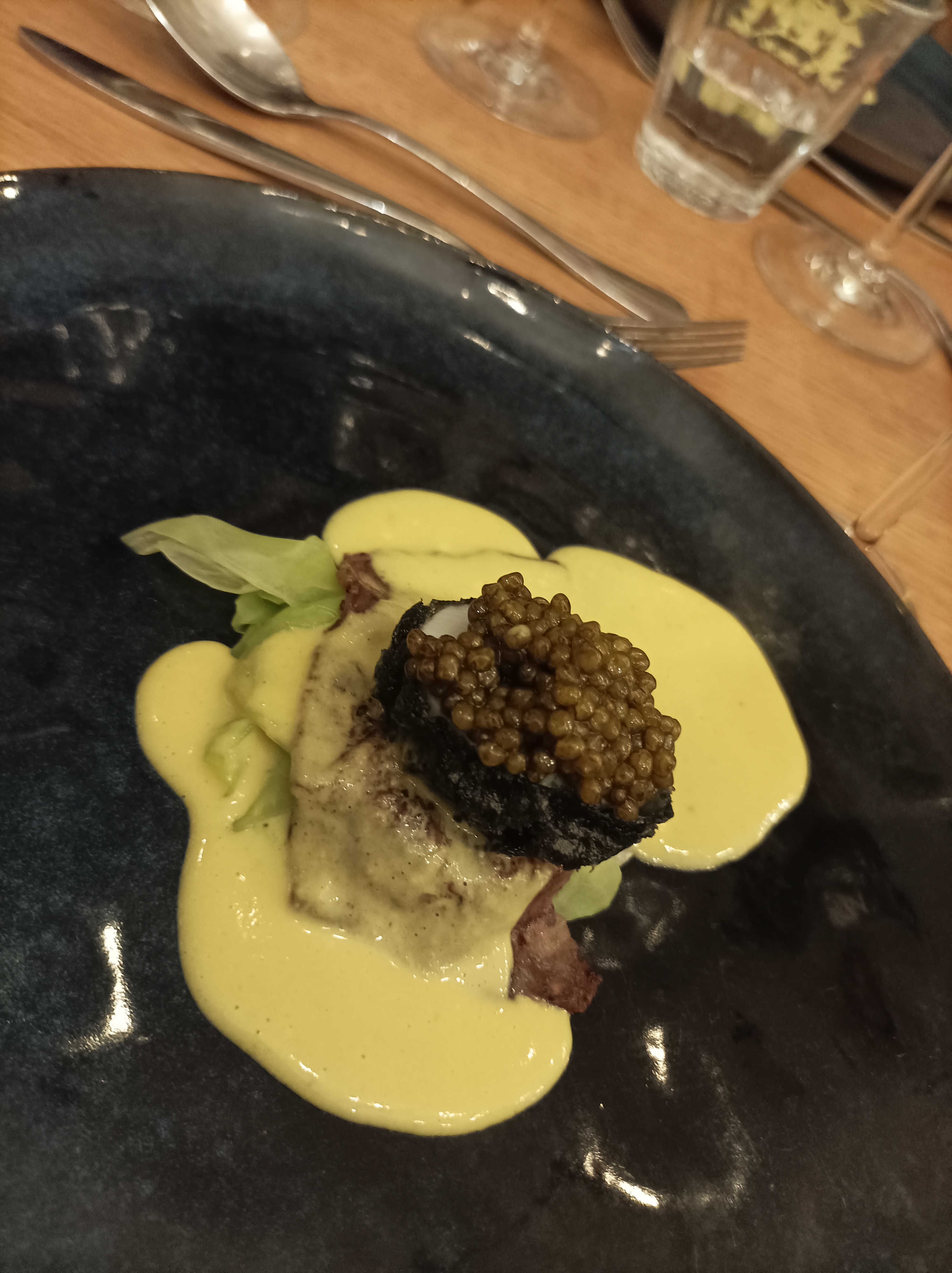 Lentillons de champagne Beluga, andouillette 5A, crème de chaource : Un régal ! Je pensais que ça allait être lourd pour une entrée mais pas du tout !!! La carte change régulièrement, et il a que du bon ! Je recommande ce restaurant très bien décoré. Pensez à réserver !