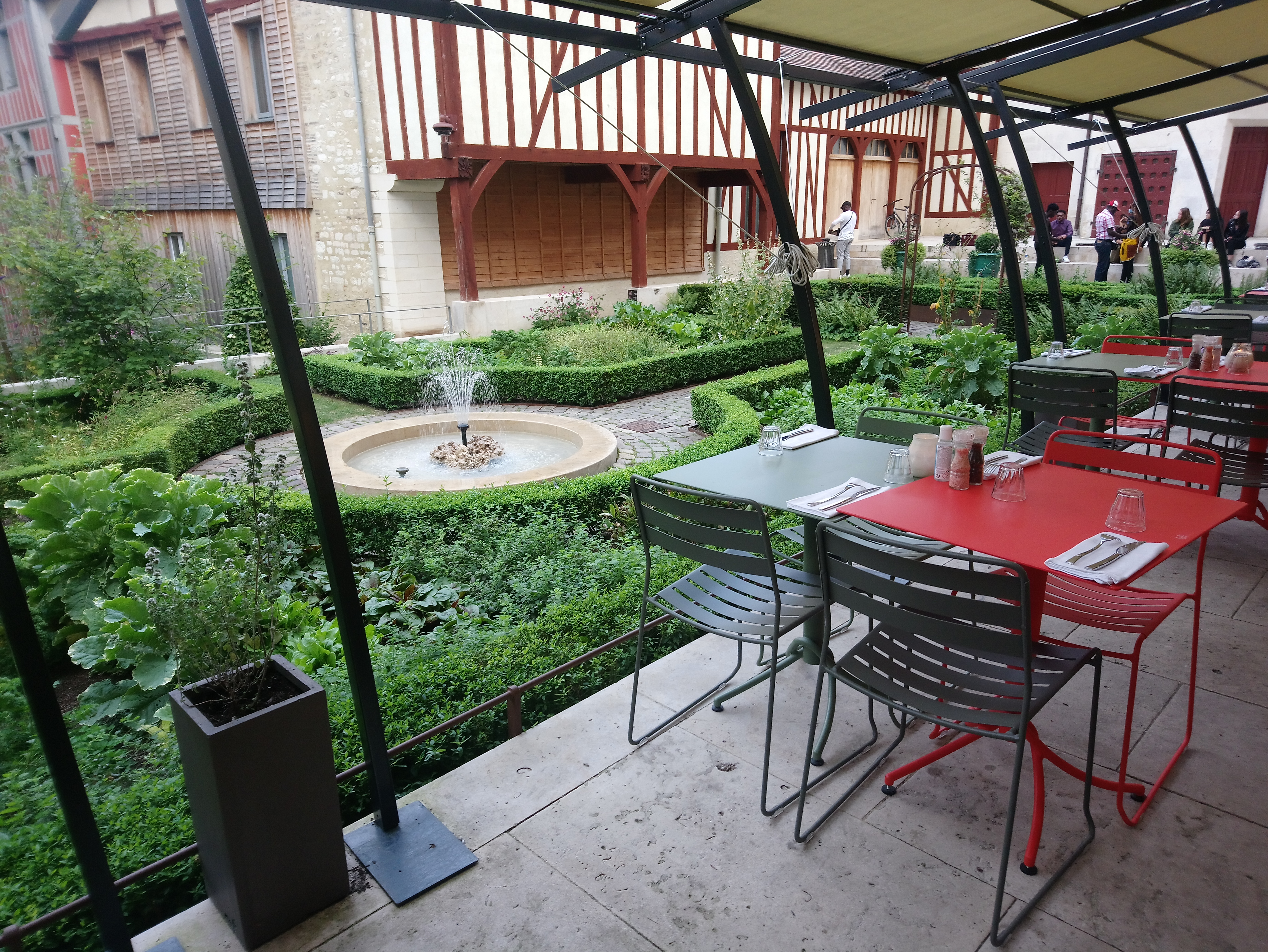 Accueil agréable nous n' avions pas réservé mais une table a été mise à notre disposition. Superbe terrasse à l' arrière du restaurant avec végétation et eaux cadre très agréable. Menu du jour excellent rapport qualité prix . Un très beau et bon restaurant dans le vieux Troyes. Adresse à retenir