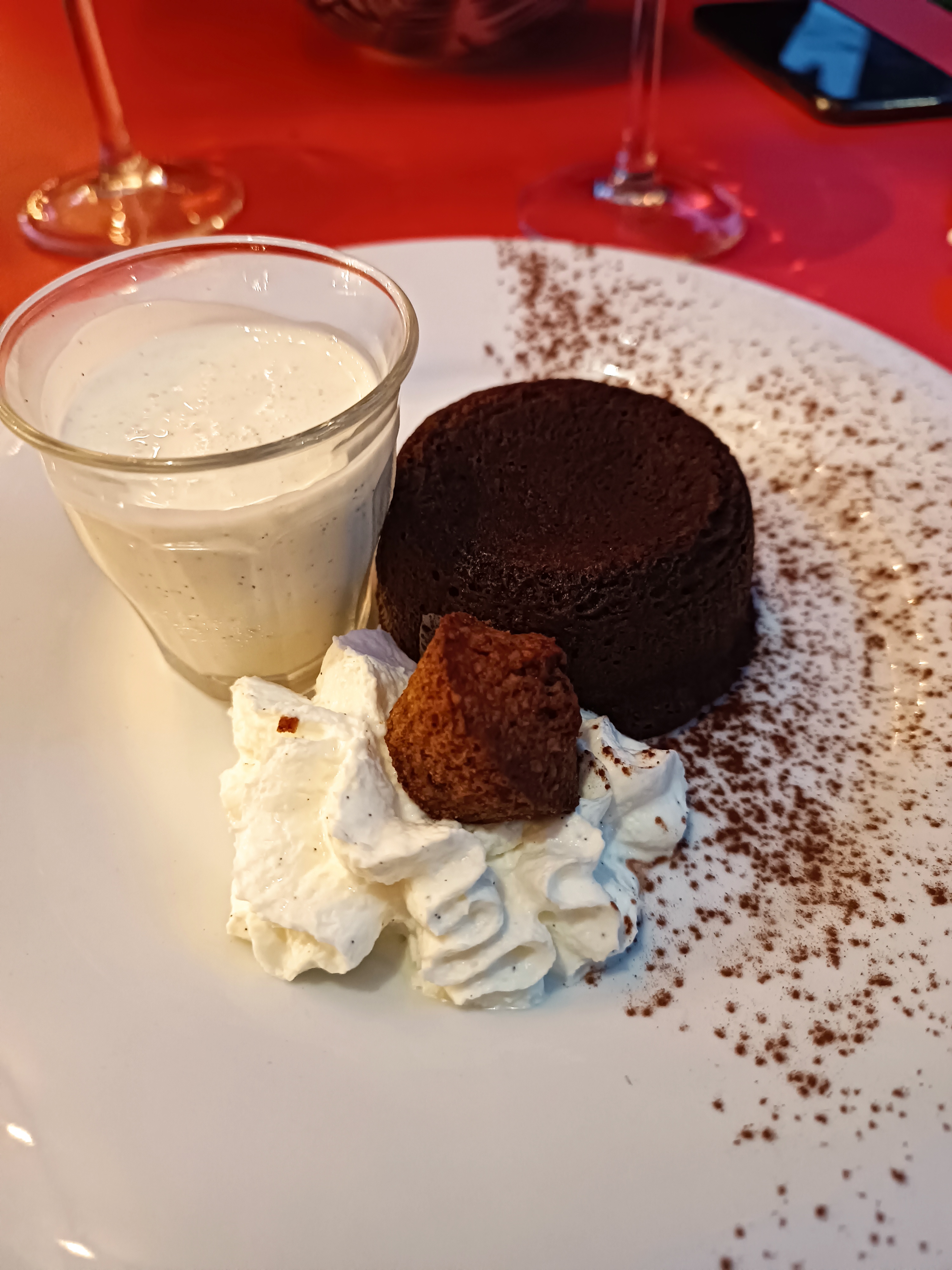 Accueil sympathique Service rapide surtout en fin de service. Les produits sont de qualité J'ai apprécié le foie gras fait maison avec la gelée de coing Le boeuf bourguignon bien cuit avec tout le reste. Le dessert : fondant au chocolat était réussi. Rien a redire... Vraiment Continuez ainsi A très vite. Un futur troyen.